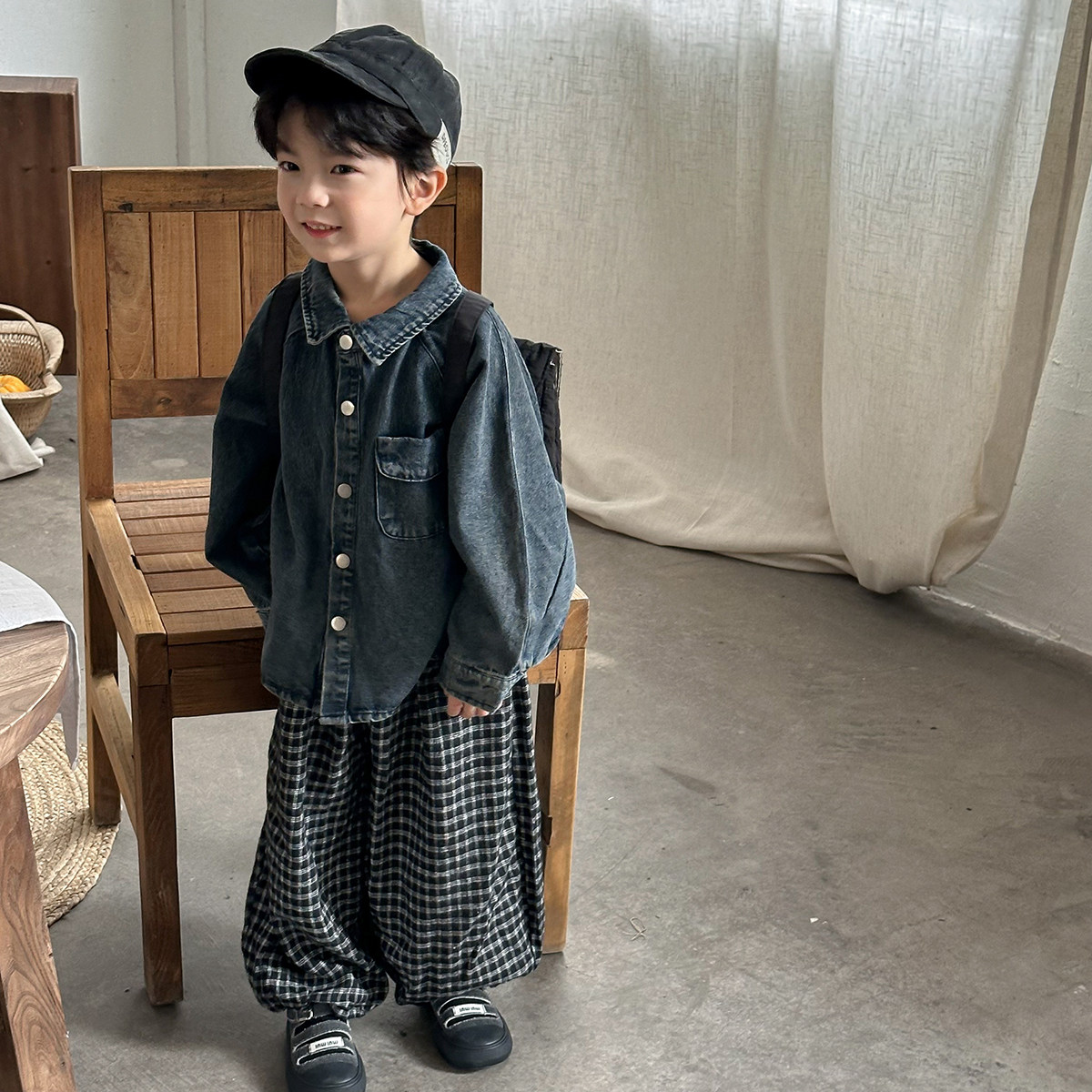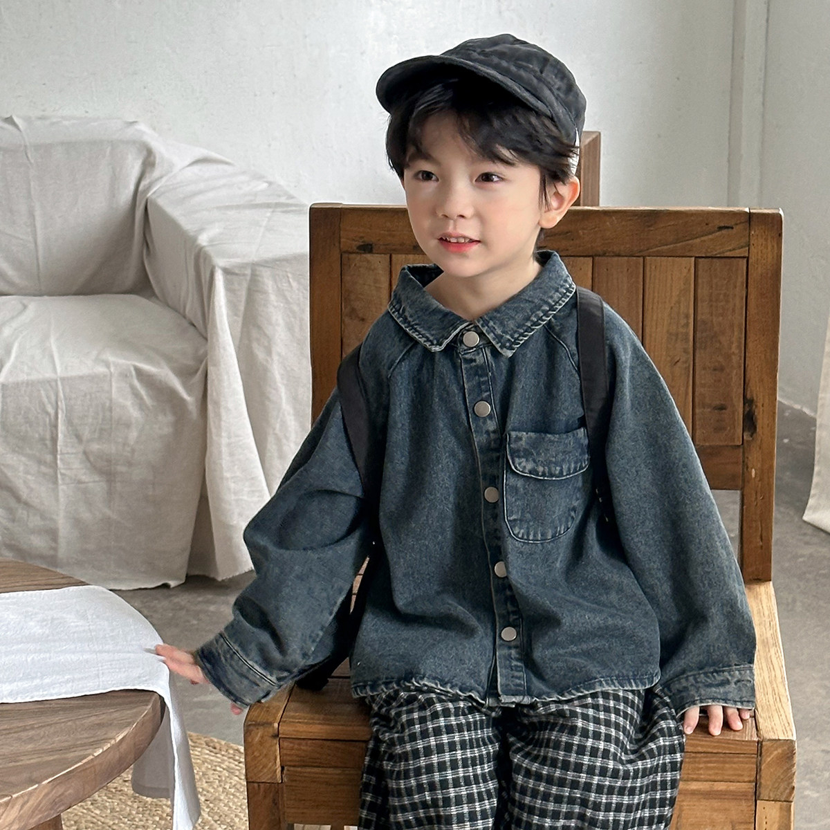 暮晨家新款春装2026男童棉质牛仔长袖衬衫中小童做旧洋气外套衬衣