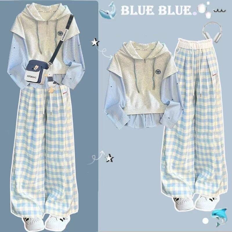女童卫衣套装春秋款2025新款儿童洋气时髦假两件上衣中大童两件套