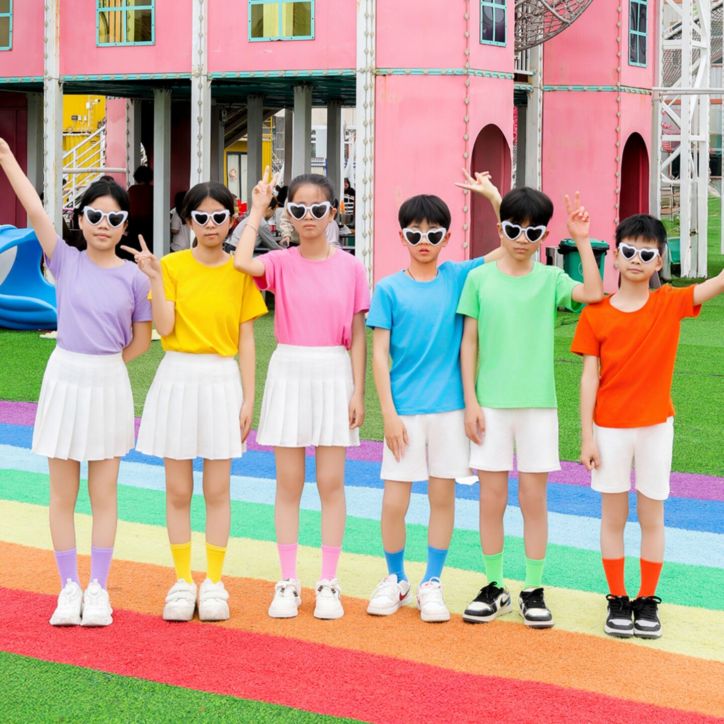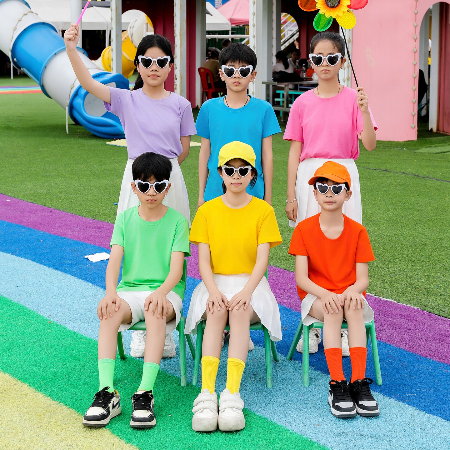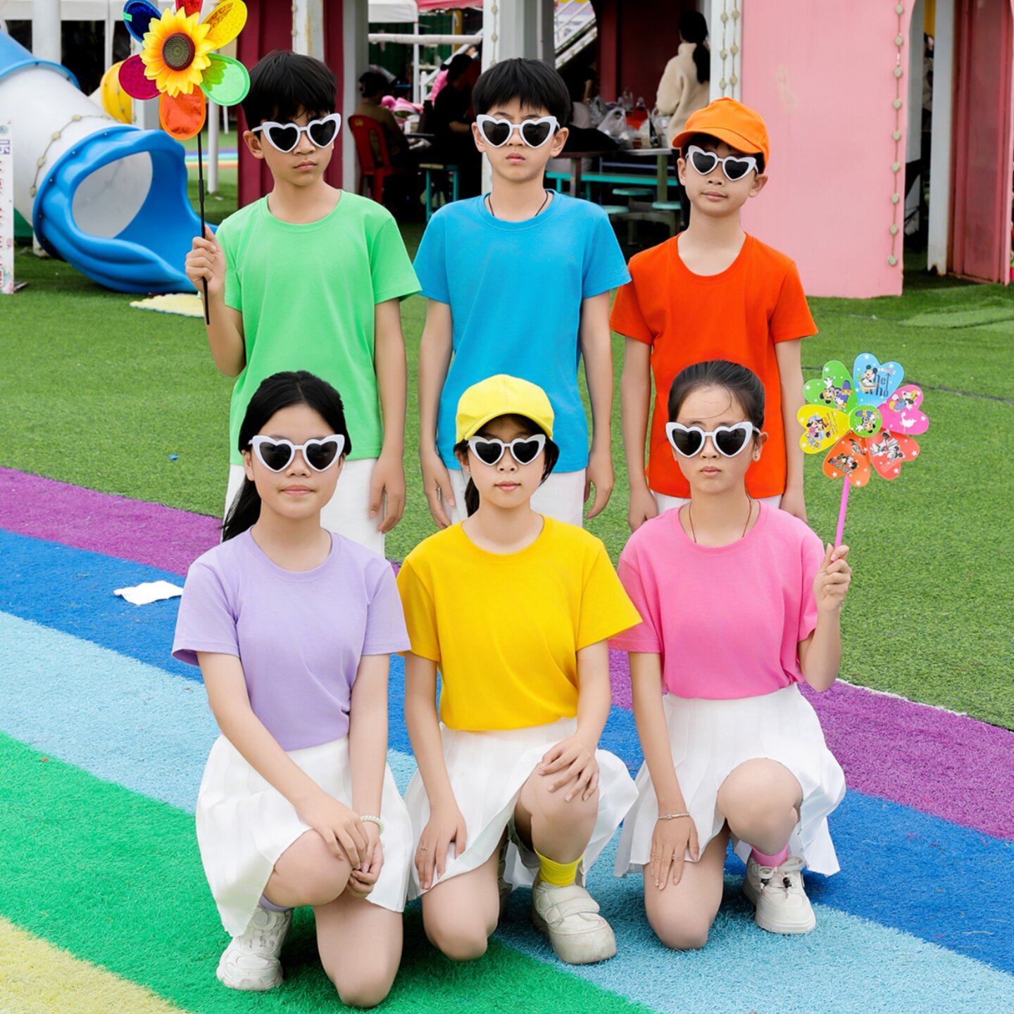 儿童糖果色短袖彩色小学生幼儿园亲子团体多巴胺演出服班服t恤