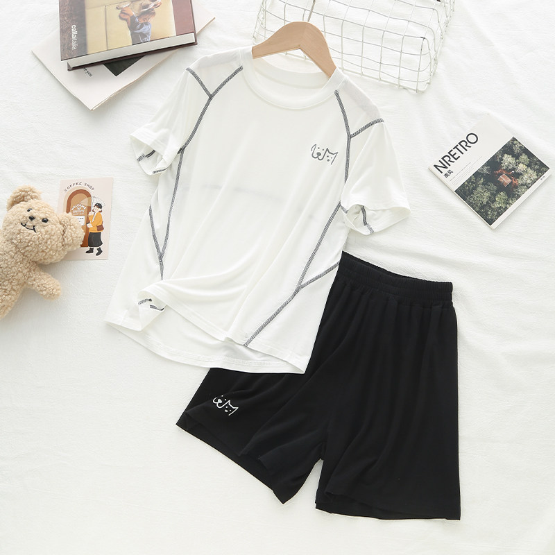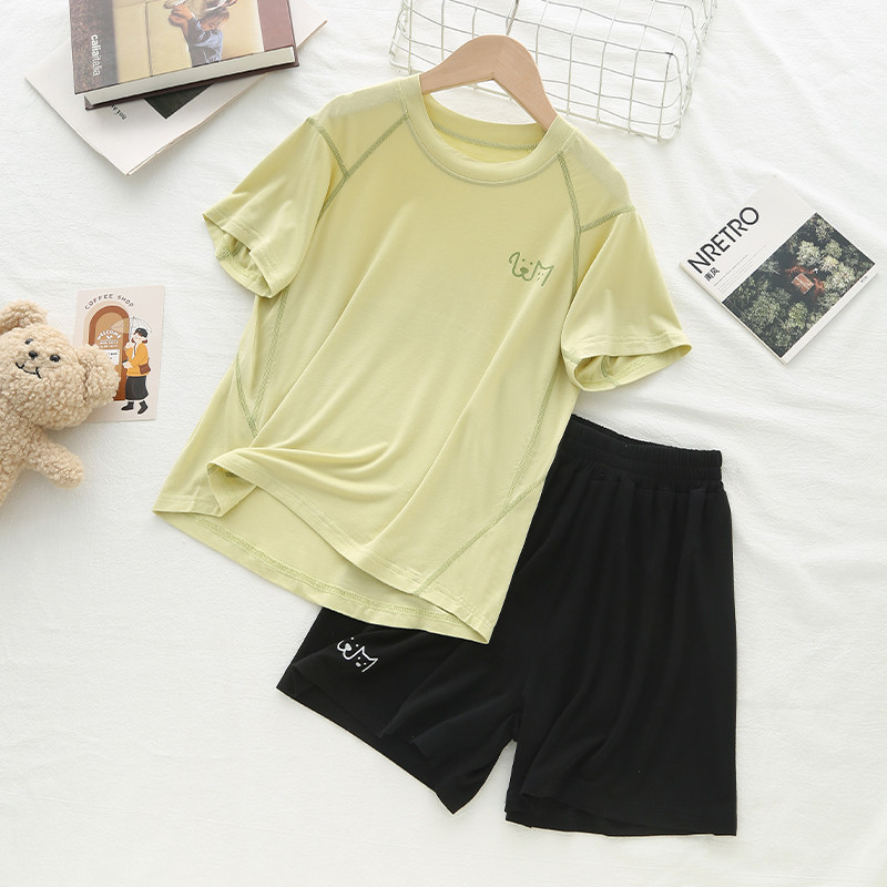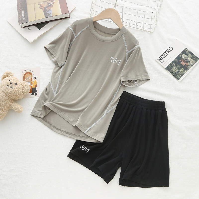 『50支高密莫代尔』儿童短袖睡衣男女童运动套装宝宝空调服撞色