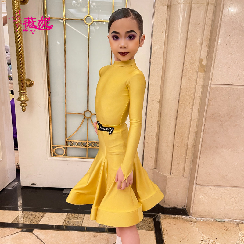 薇妮拉丁舞服专业规定服女儿童表演服舞裙大摆裙比赛服考级演出服