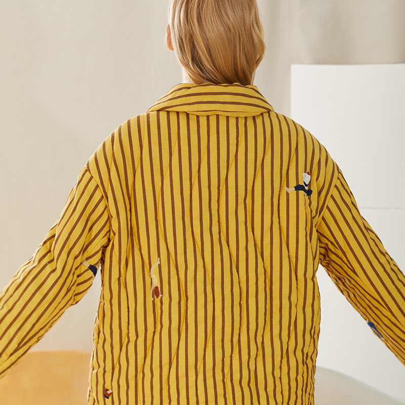 朵朵可可夹棉睡衣女冬季新款全棉三层加厚保暖条纹家居服可外穿
