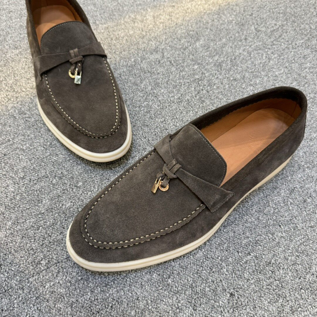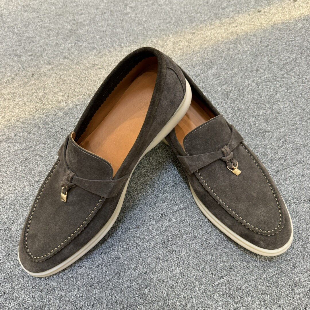 LP老钱风男士乐福鞋真皮牛反绒复古休闲一脚蹬单鞋流苏扣豆豆鞋