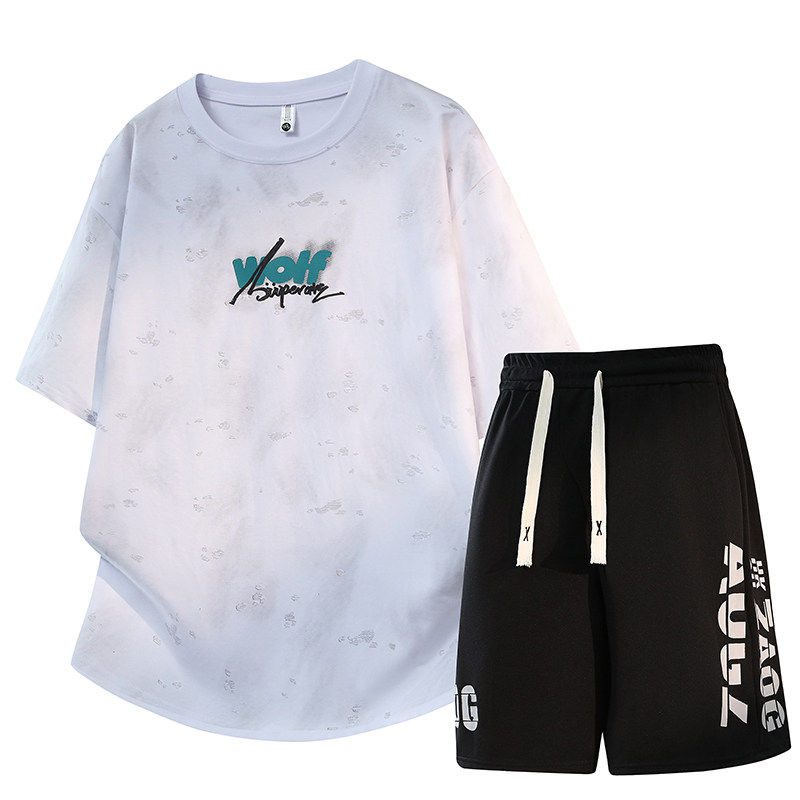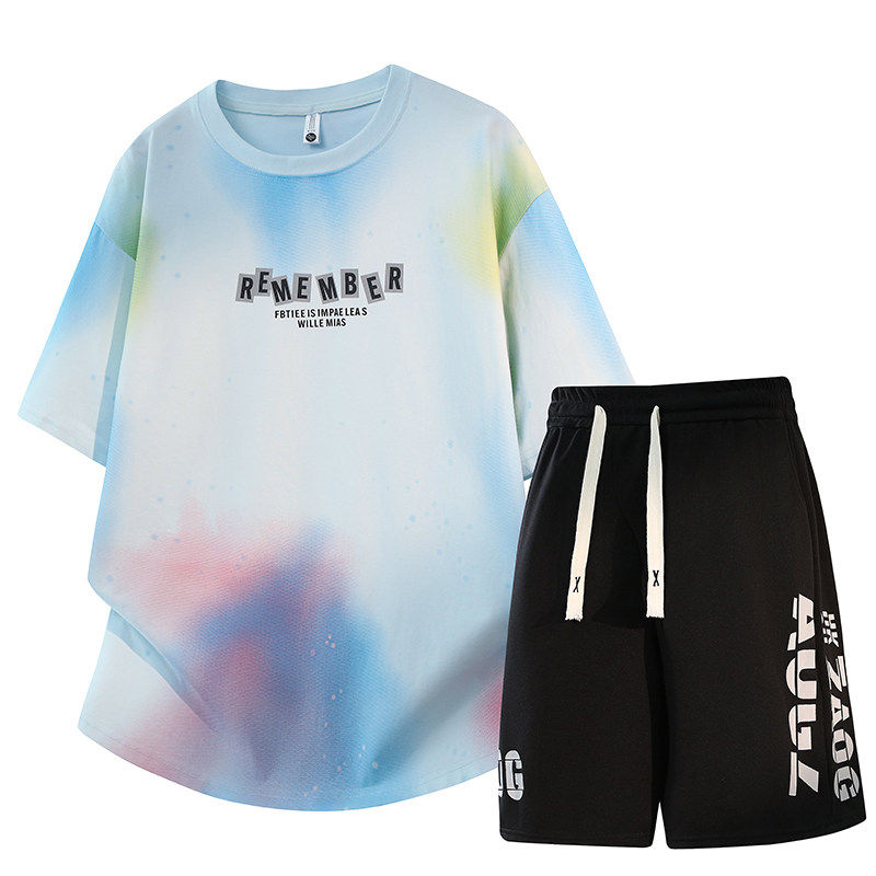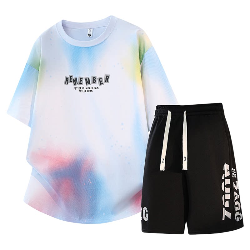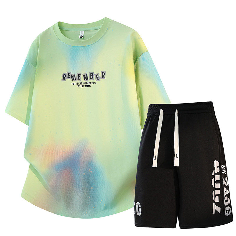 夏装潮流短袖t恤男孩新款初中学生青少年胖大童运动套装男装帅气
