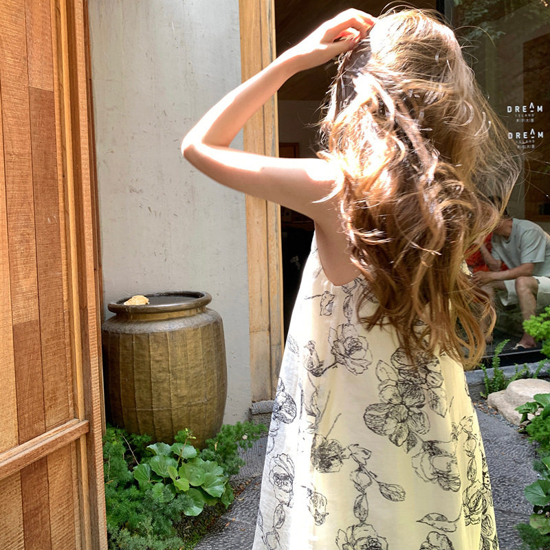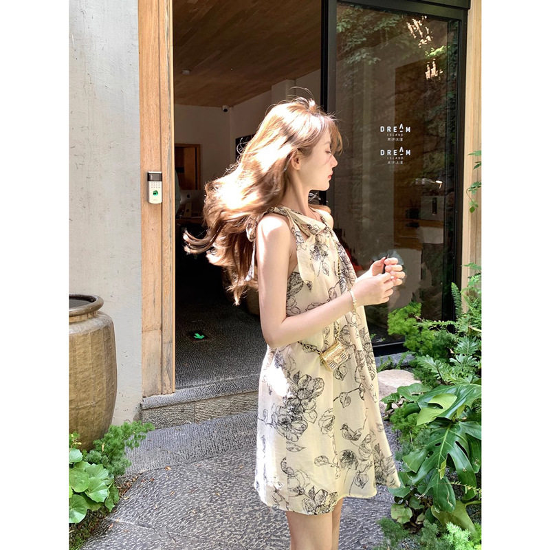 挂脖吊带碎花连衣裙女2026新款夏季小个子新中式海边度假短裙仙女