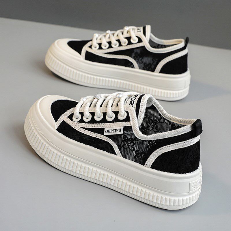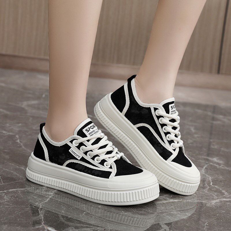 2024夏季新款网面网鞋夏款小白女鞋帆I布鞋薄款百搭厚底透气板鞋