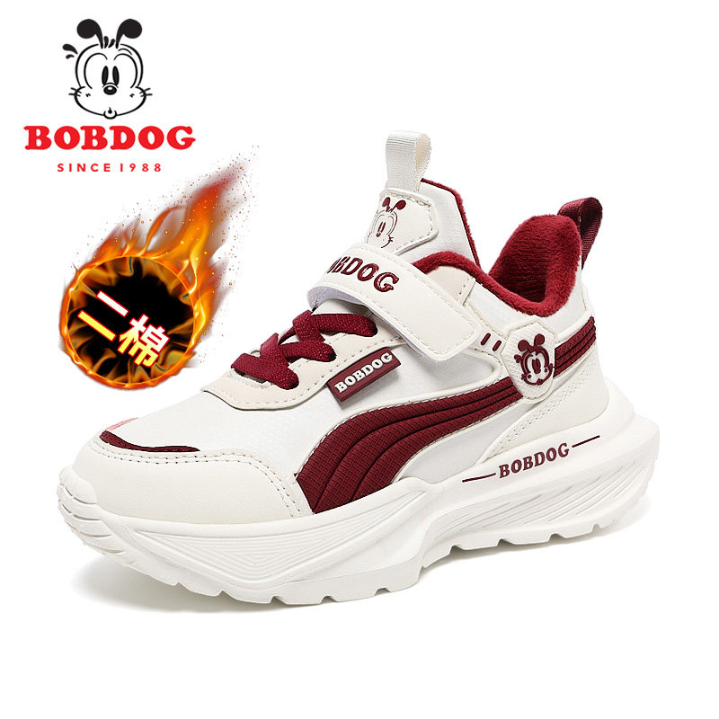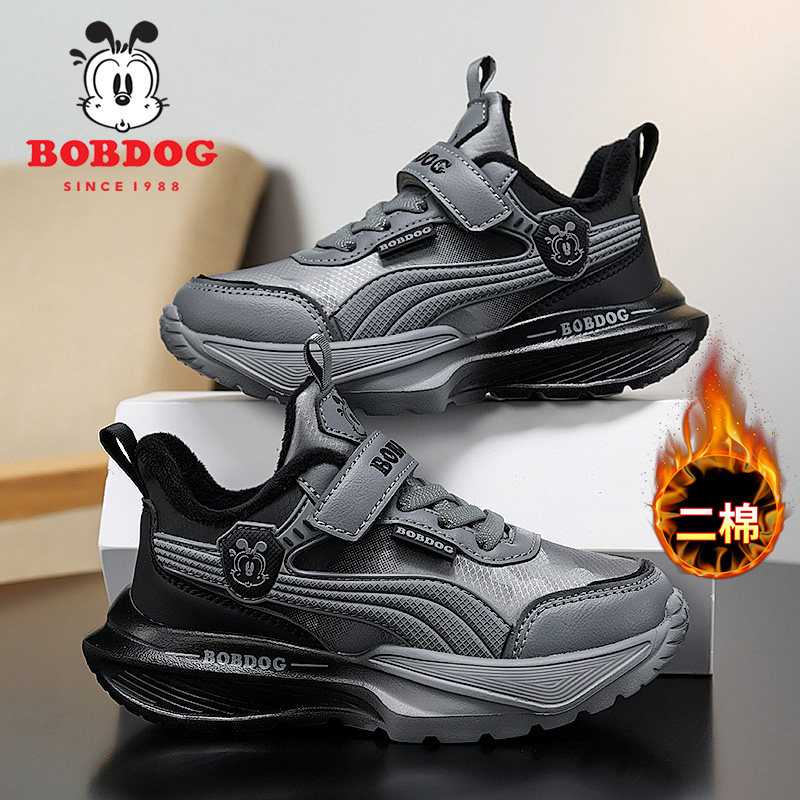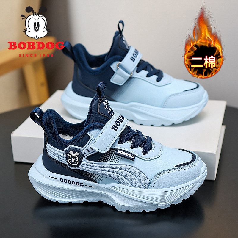 巴布豆童鞋男童鞋子2025冬季新款皮面防水儿童运动鞋男孩加绒棉鞋