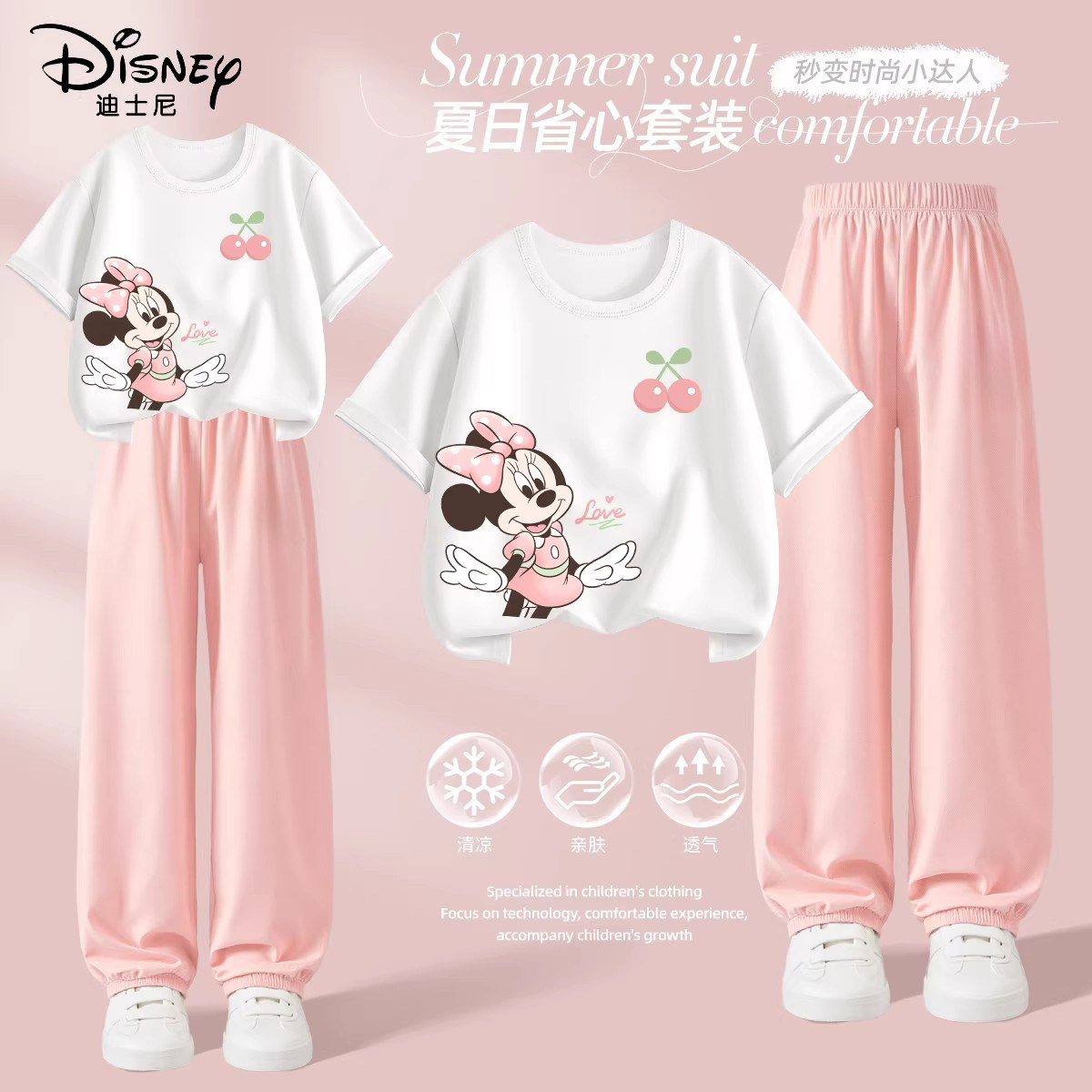 迪士尼女童夏季套装2026新款薄款纯棉短袖今年流行儿童夏装运动服