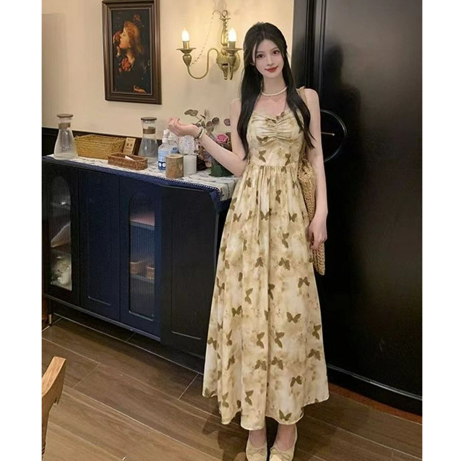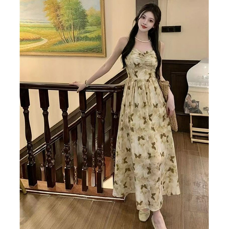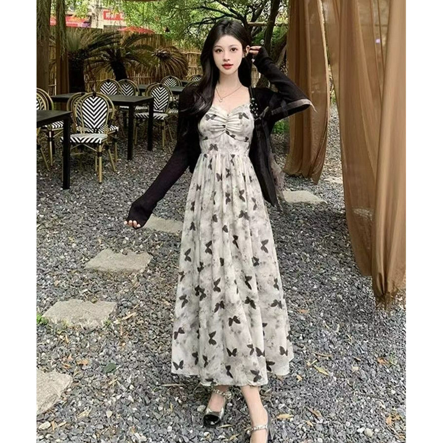 温柔风吊带连衣裙女中长款2026夏季新款开衫两件套印花气质裙子
