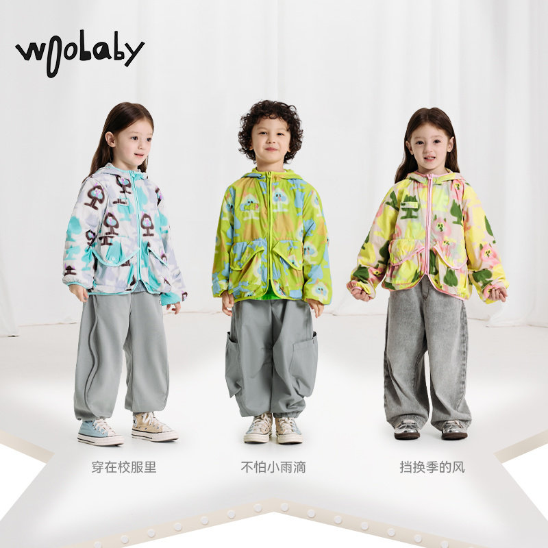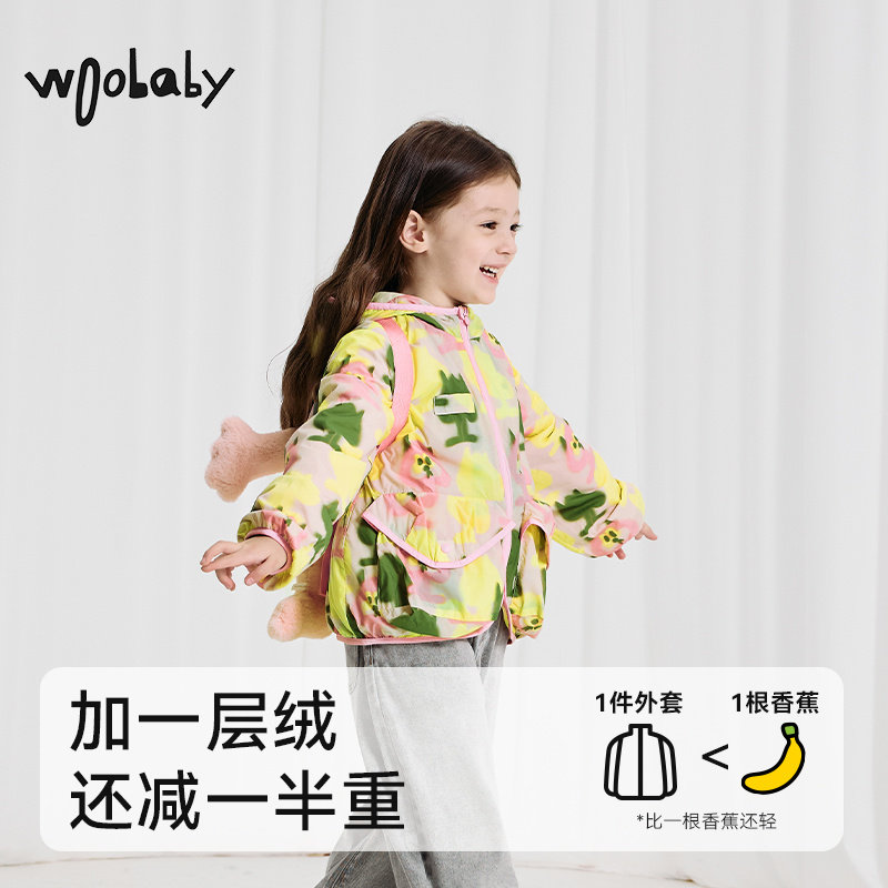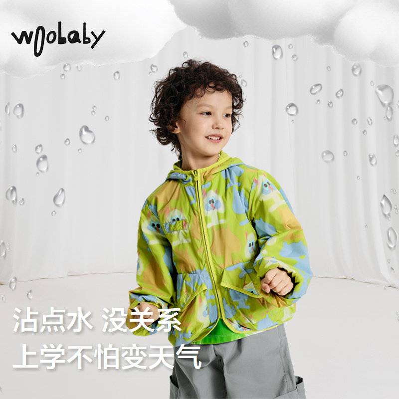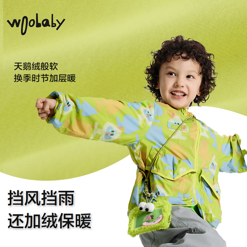 保暖防泼水|woobaby儿童外套男女童春装宝宝连帽洋气防风加绒上衣