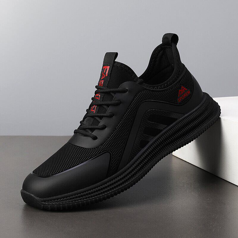 男款运动鞋耐磨跑步鞋夏季训练鞋黑色透气作训鞋网面减震防臭轻便