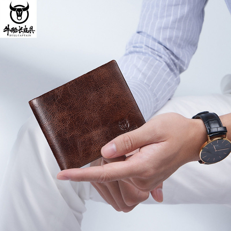 牛船长软头层牛皮闪电纹男钱包真皮多卡位复古超薄钱夹防盗刷RFID