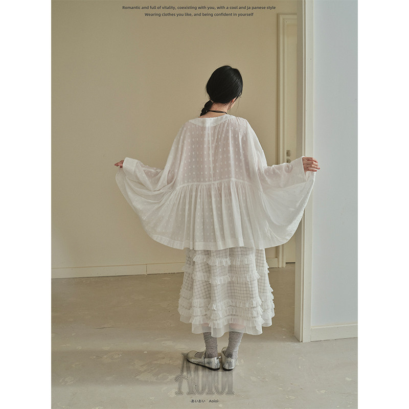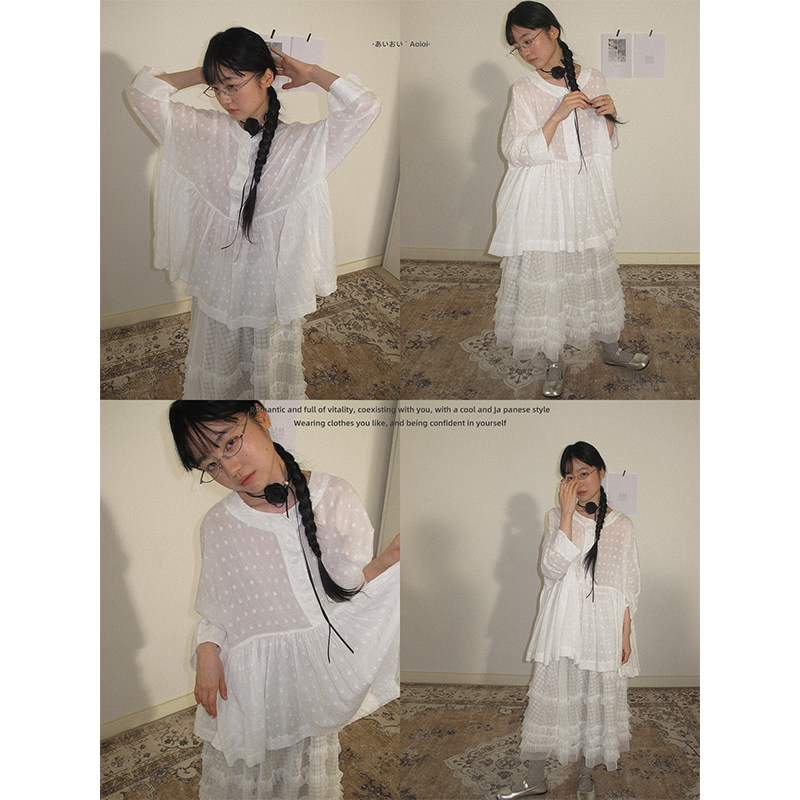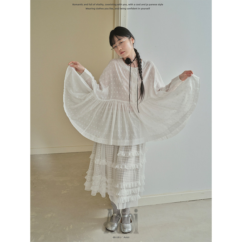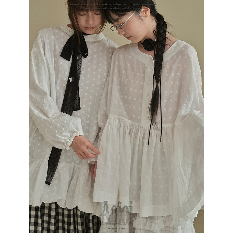 Aoioi日系少女立体波点长袖娃娃裙女春夏宽松显瘦中长款连衣裙子