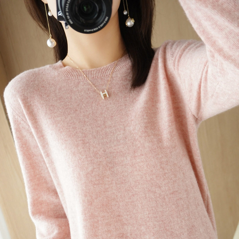 红色毛衣女款2026春装新款女装宽松圆领纯色短款套头打底针织衫