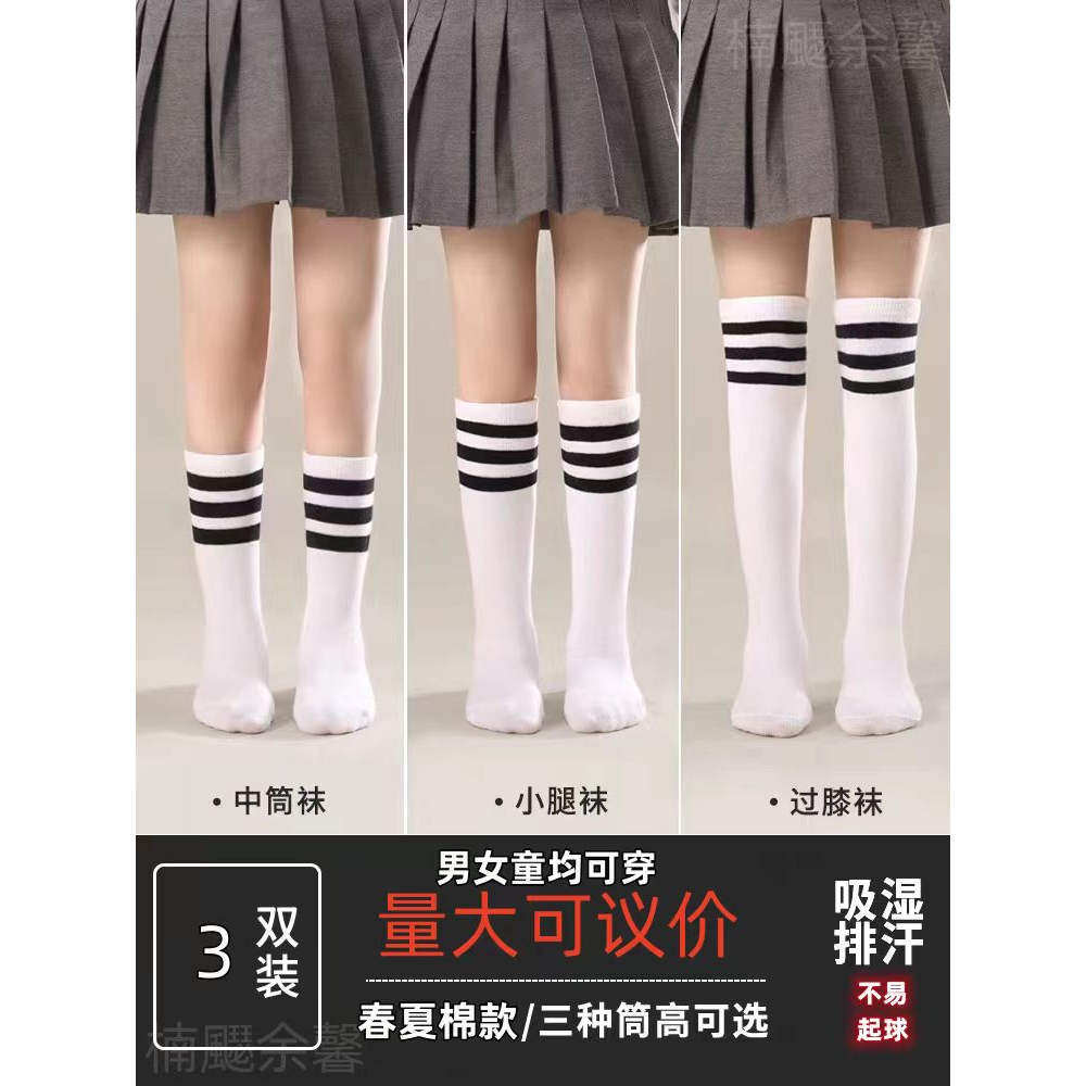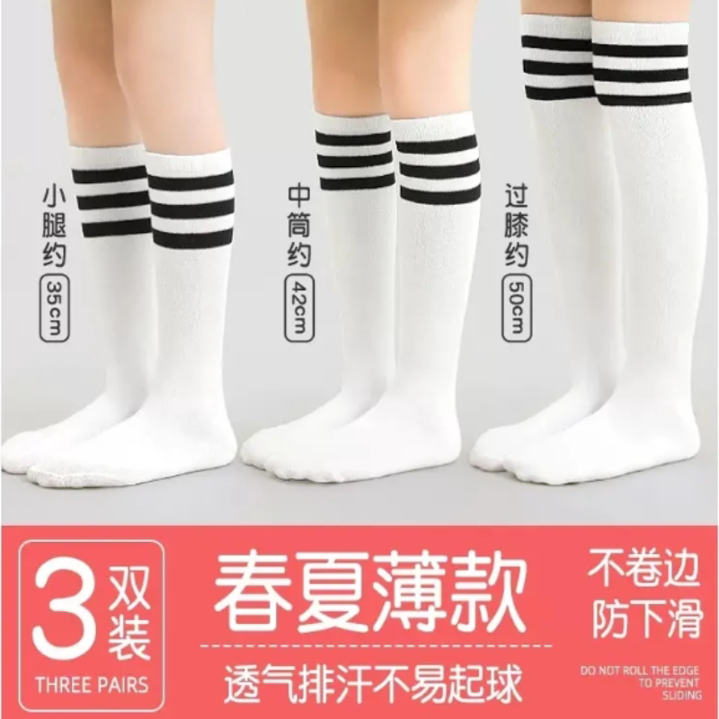 儿童袜子夏季薄款长筒袜春白色学生足球过膝袜男童女童中筒袜