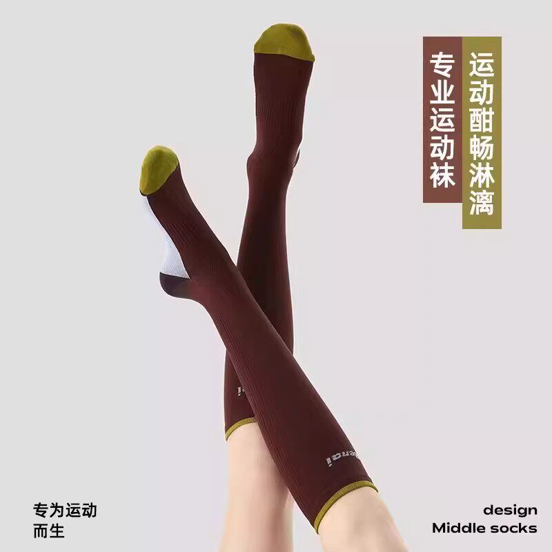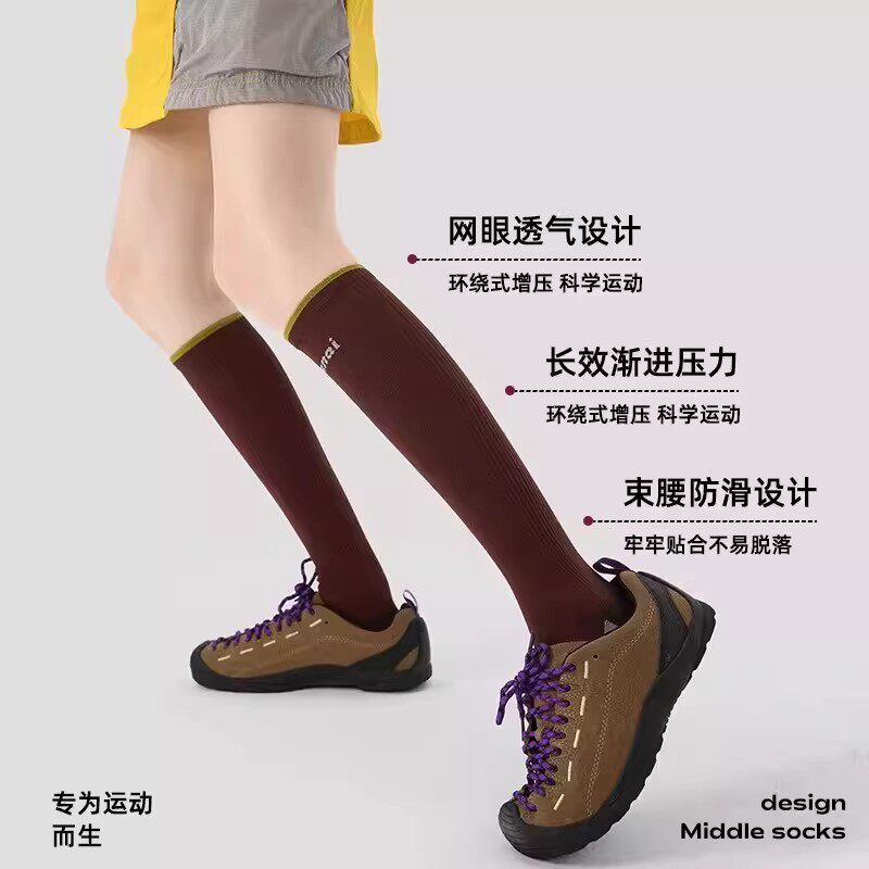 LULU VURU运动压力健身小腿袜女透气跑步骑行长筒袜瑜伽训练袜子
