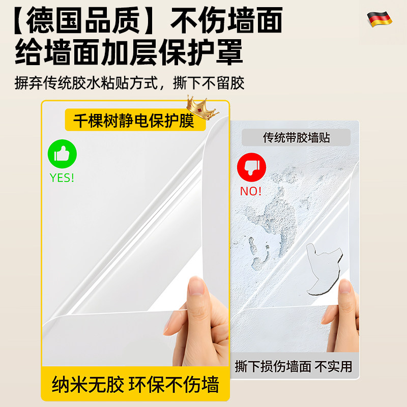 静电墙面保护膜白墙乳胶漆吸附墙壁贴纸不伤墙防水防脏透明防踢贴