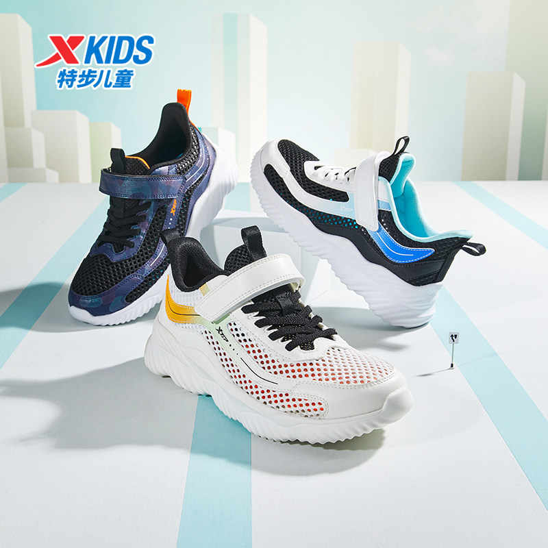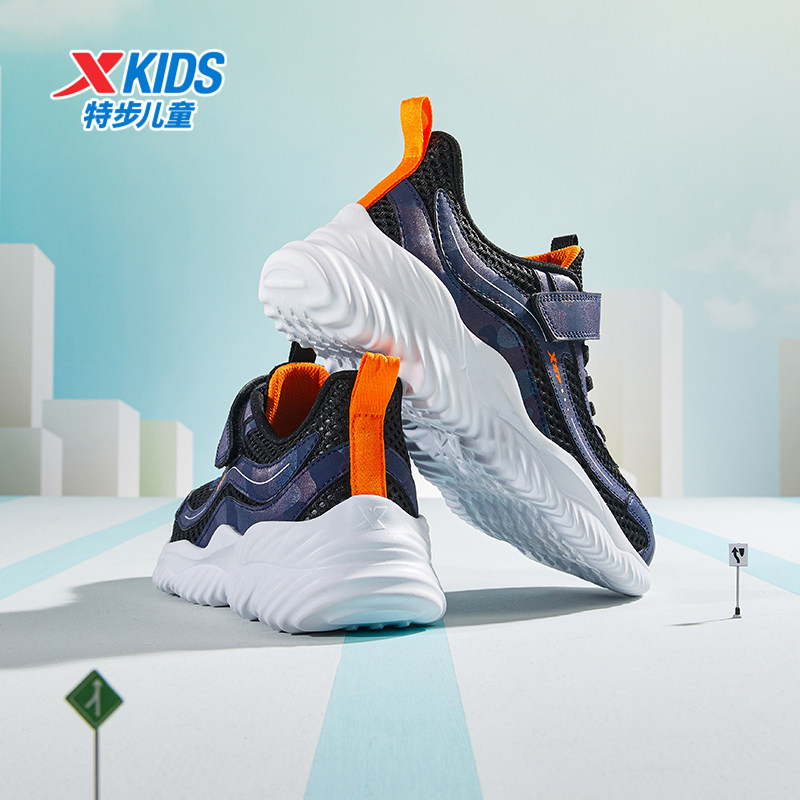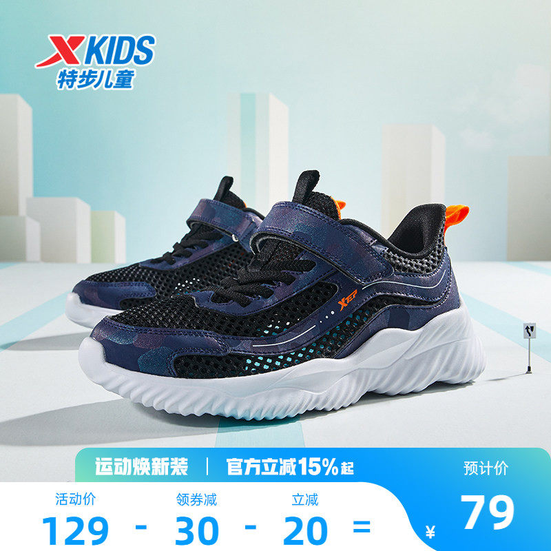 特步童鞋夏季款中大童网面透气儿童运动鞋子男童耐磨魔术贴跑步鞋