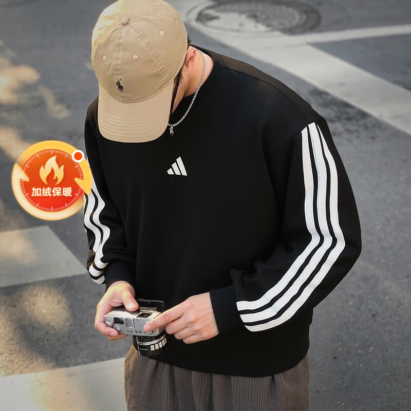 Adidas阿迪达斯官方卫衣男款春季新款加厚保暖上衣打底衫加绒卫衣