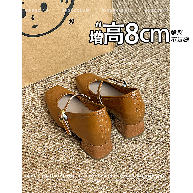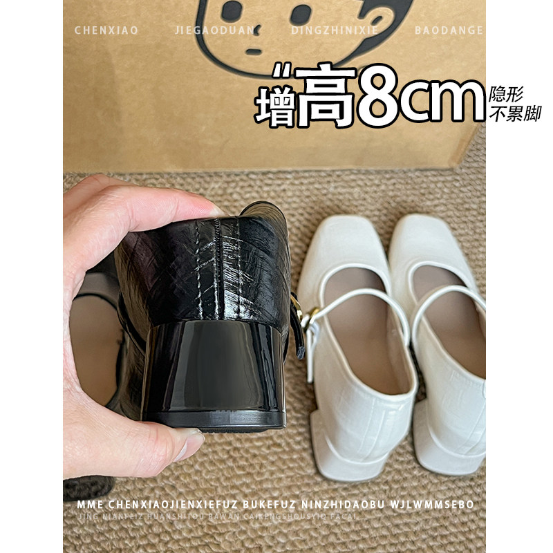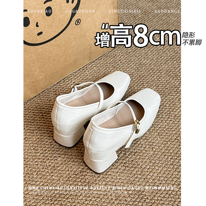 不累脚!内增高8CM粗跟玛丽珍鞋2026春新款方头小个子浅口单鞋女