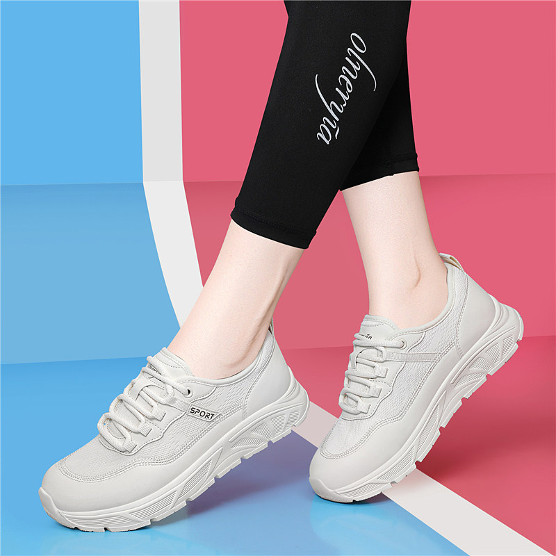 真皮轻便小白鞋女2026新款春季软底不累脚透气防滑厚底运动休闲鞋