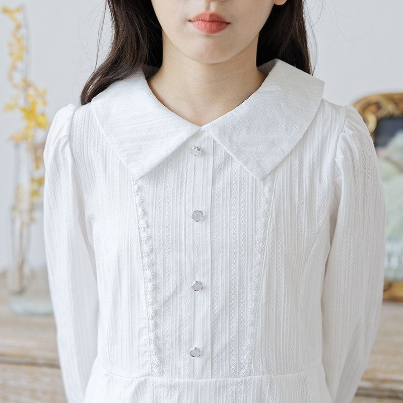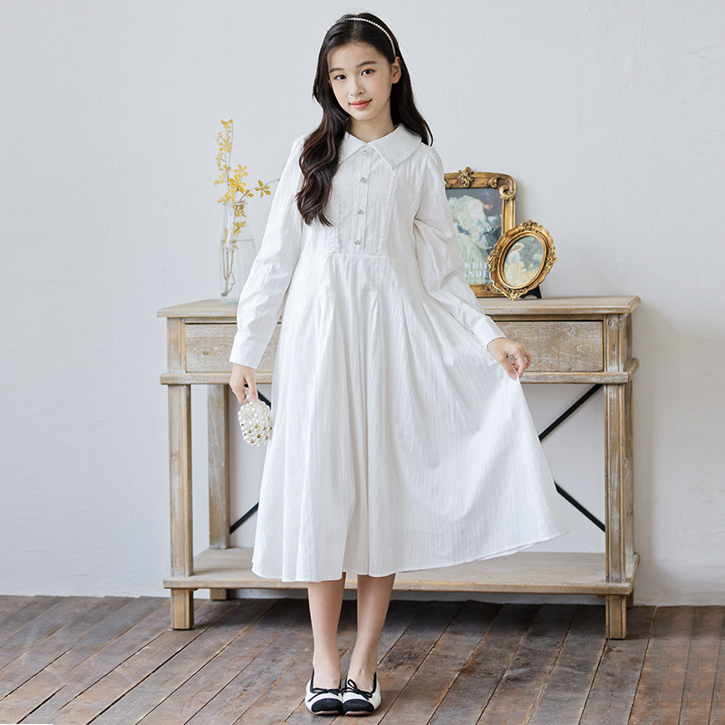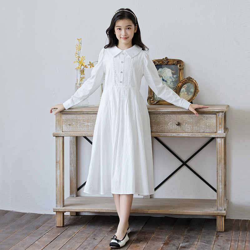 中大女童连衣裙2026新款韩版宽松娃娃领长袖白色裙子女孩洋气秋装