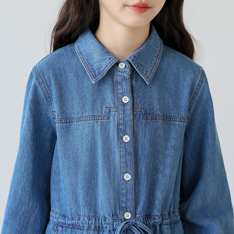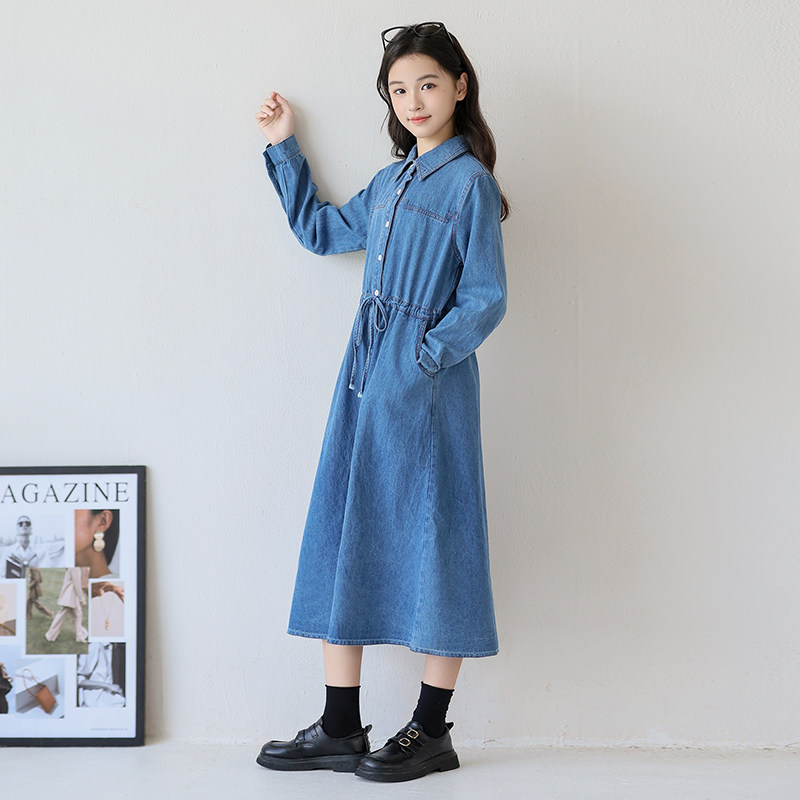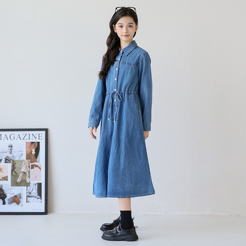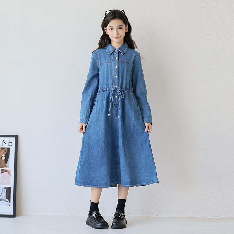 中大女童牛仔连衣裙2026新款气质休闲长袖收腰裙子女孩洋气春秋装