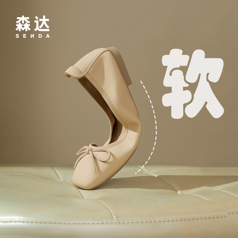 森达平底单鞋女鞋春夏商场同款一脚蹬舒适羊皮芭蕾鞋XAK01CQ4