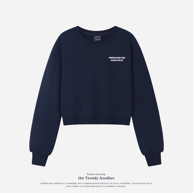 黑色短款卫衣女款小个子春秋季韩系chic冬季加厚绒圆领上衣服外套