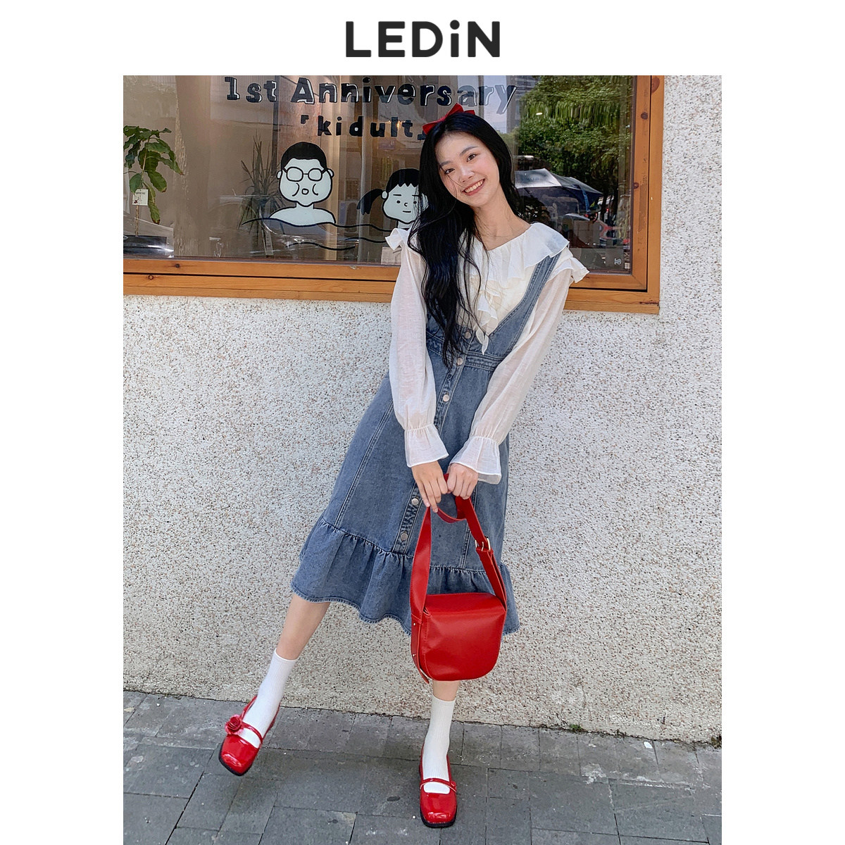 311线报网描述:柔软甜美的牛仔背带裙