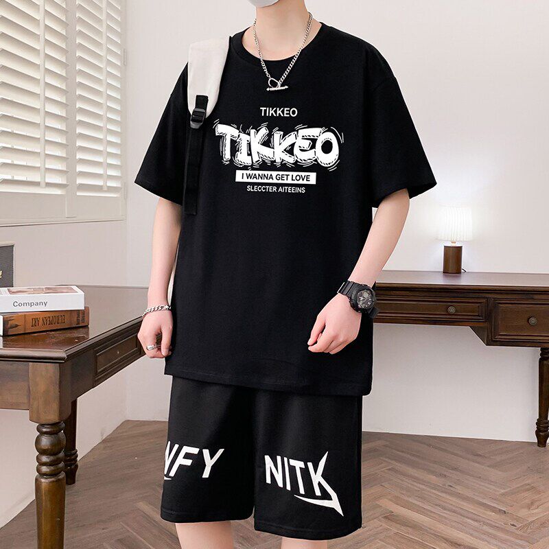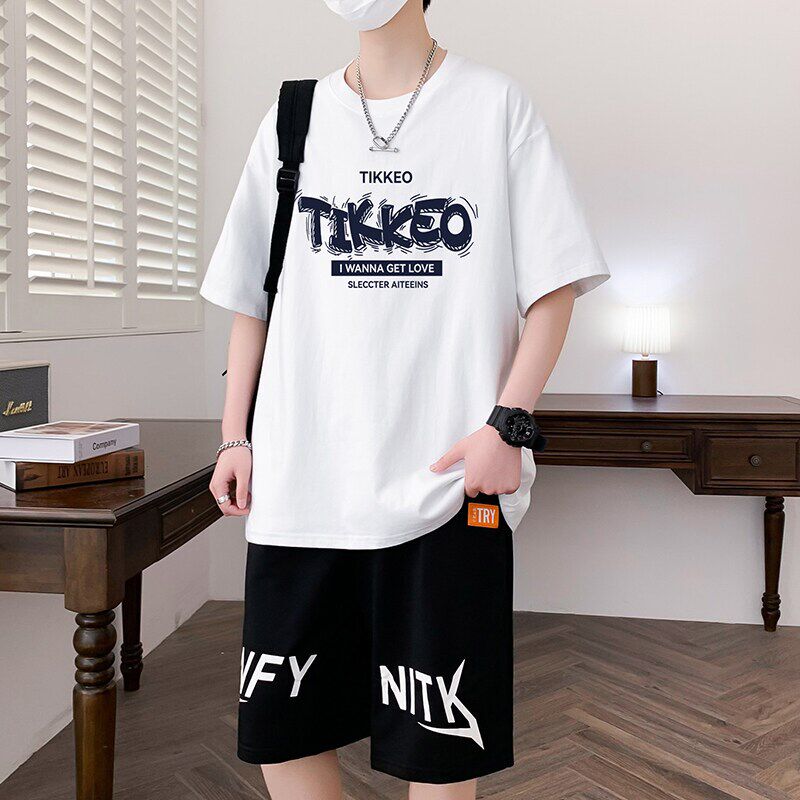 纯棉青少年短袖套装夏季男生短袖T恤初高中学生潮流休闲运动套装