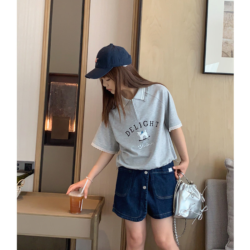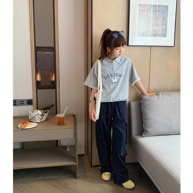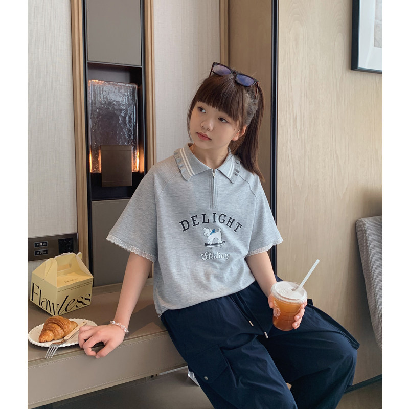 女大童蕾丝边POLO衫2025夏季新款青少年短款翻领上衣学生韩版短袖