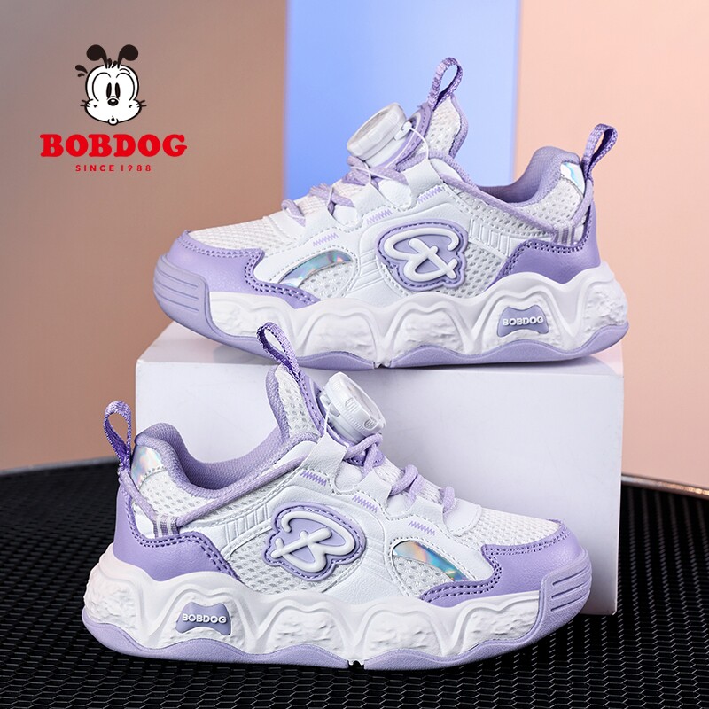 巴布豆女童运动鞋春秋新款透气网面旋转扣轻便减震跑步鞋儿童鞋子