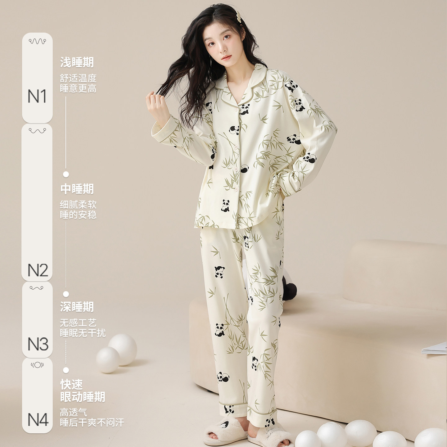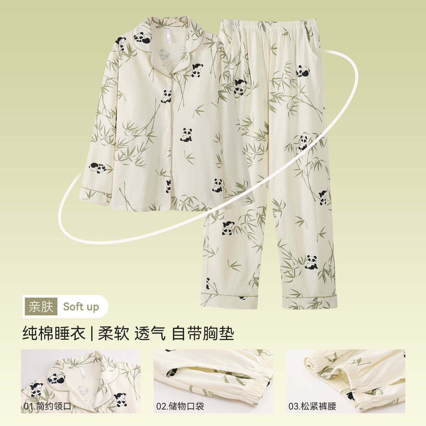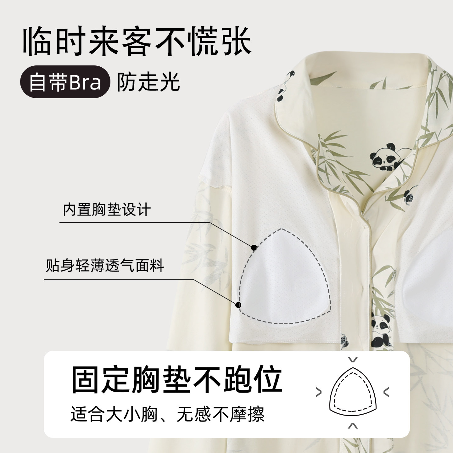 芬腾可安睡衣女款2026新款冬高级感纯棉女士带胸垫熊猫家居服春秋