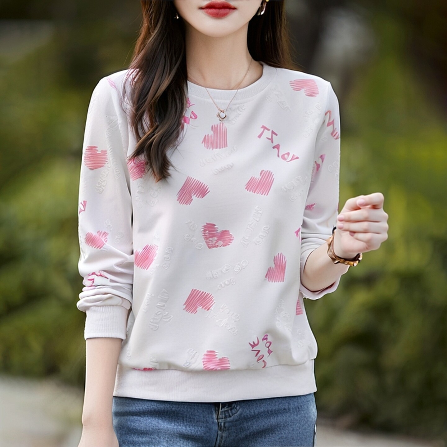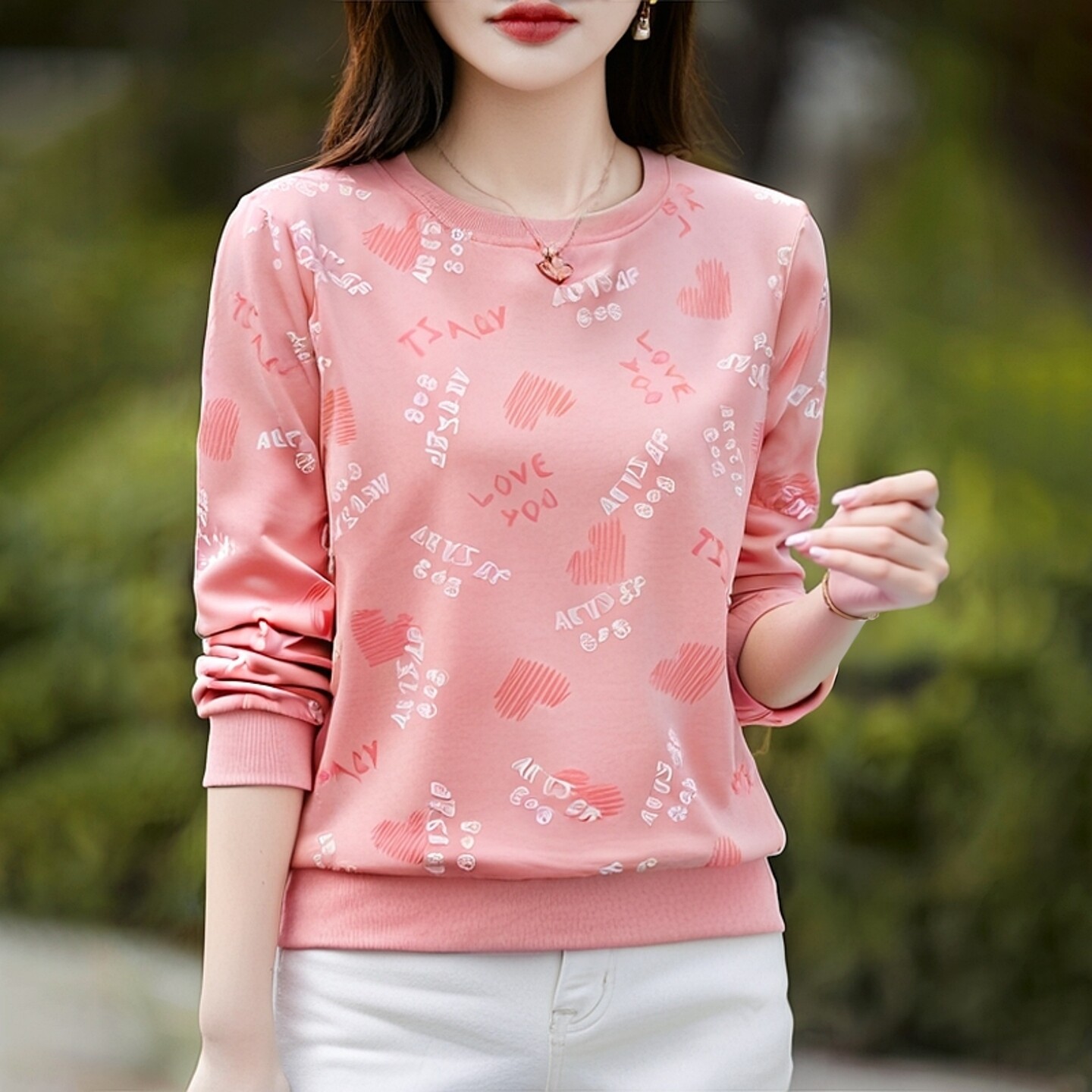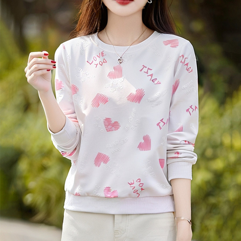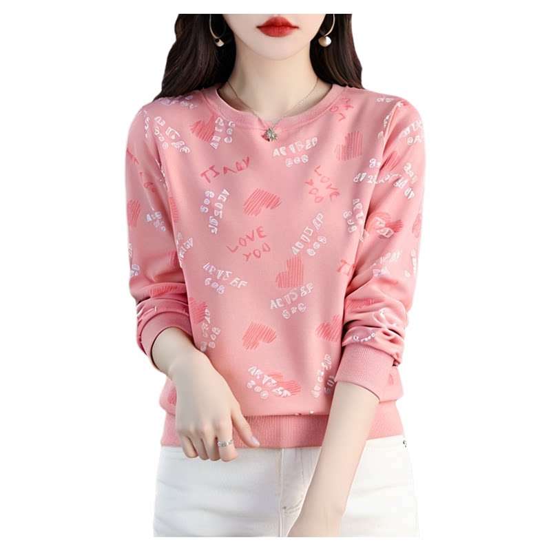 粉色长袖t恤女 2026新款爱心宽松圆领卫衣外套女装春季百搭上衣服