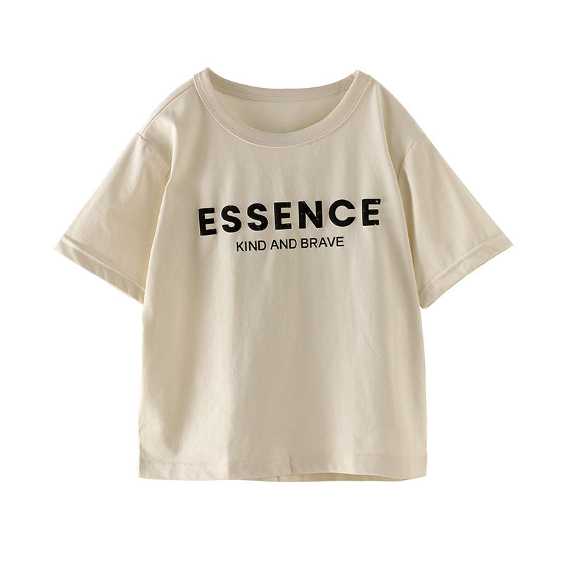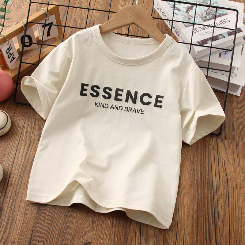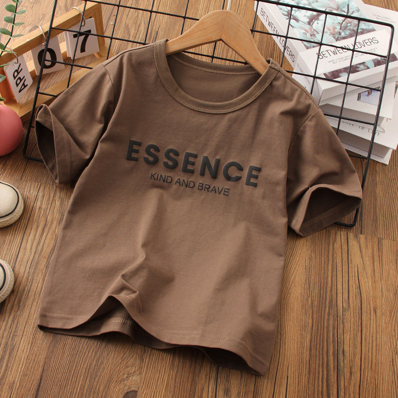 男童T恤短袖2026新款夏季透气发泡印花字母上衣男孩薄款纯色圆领