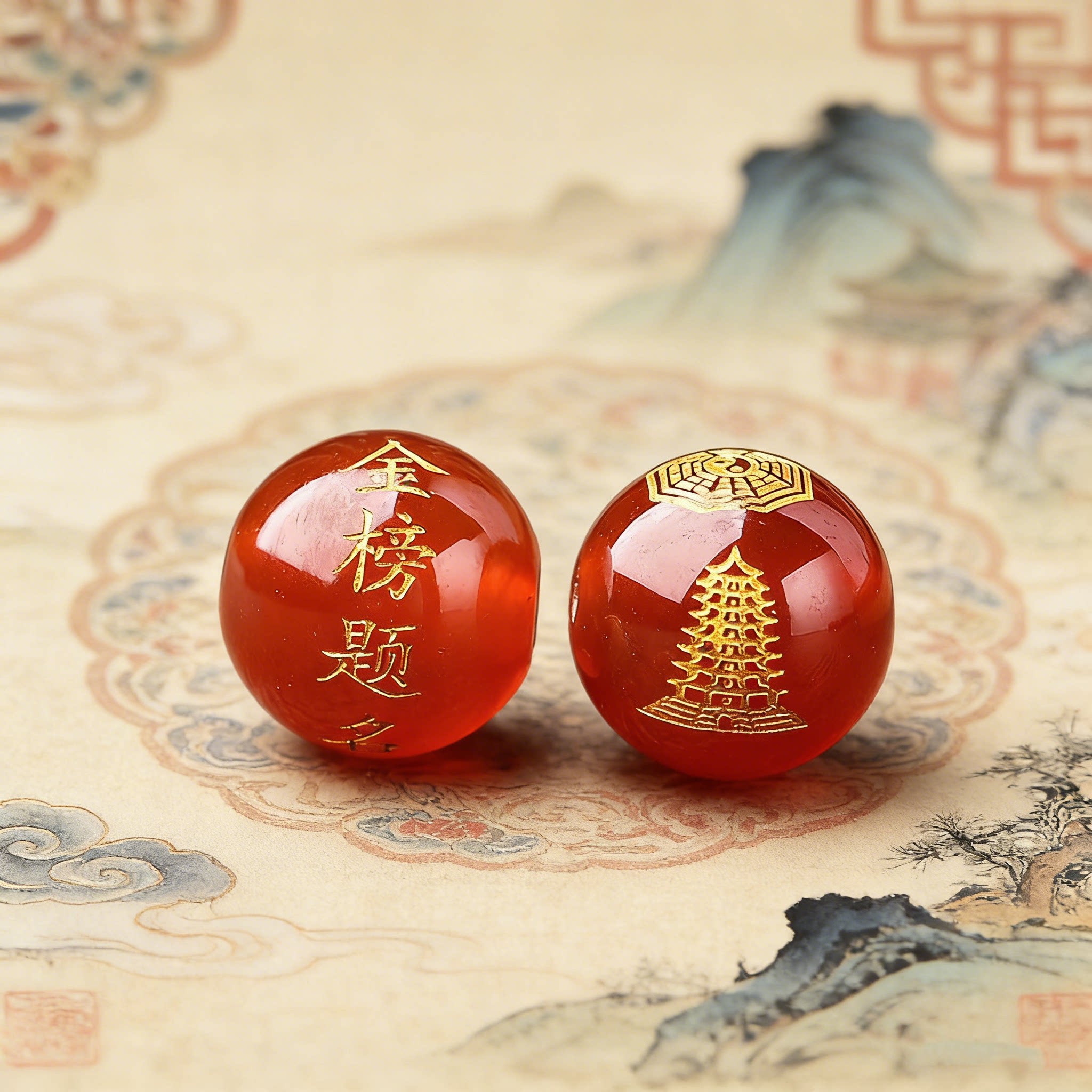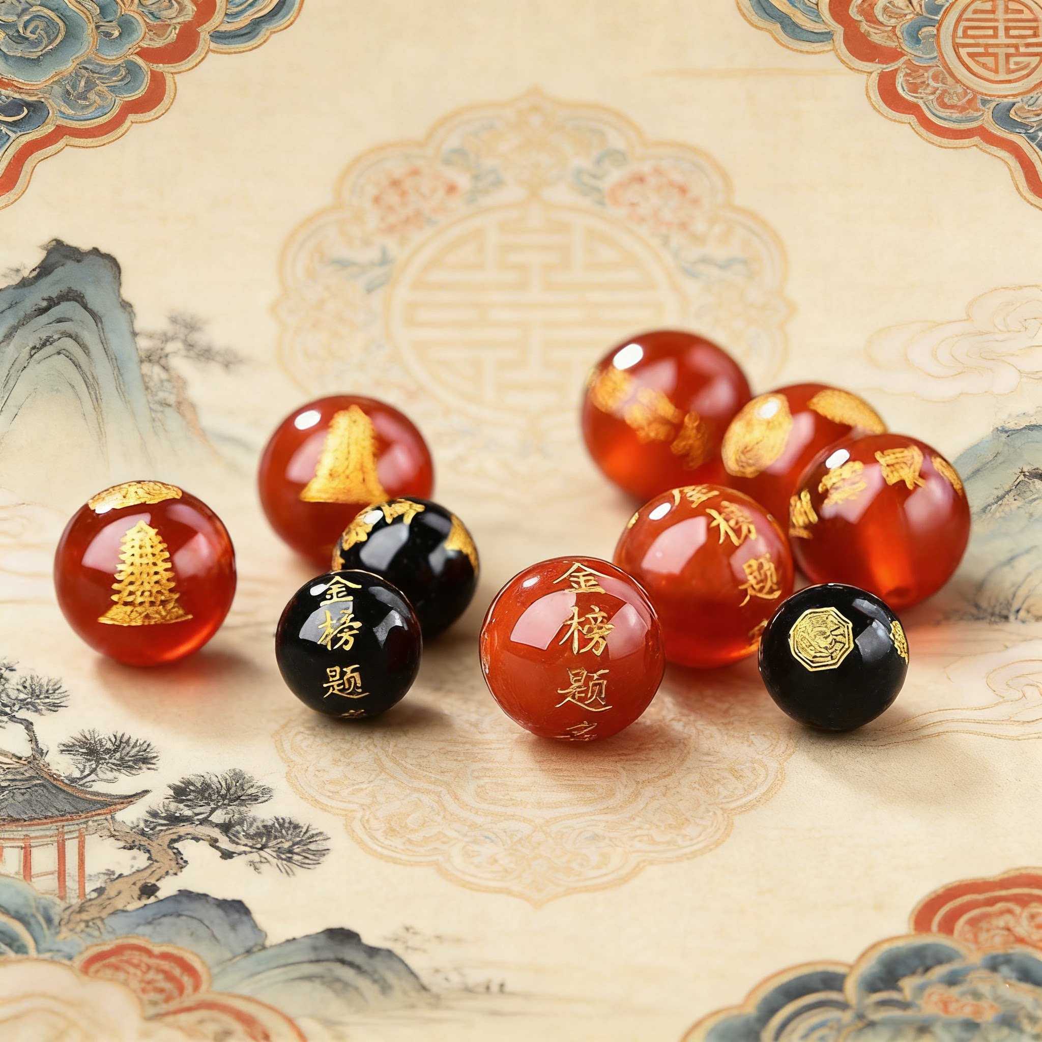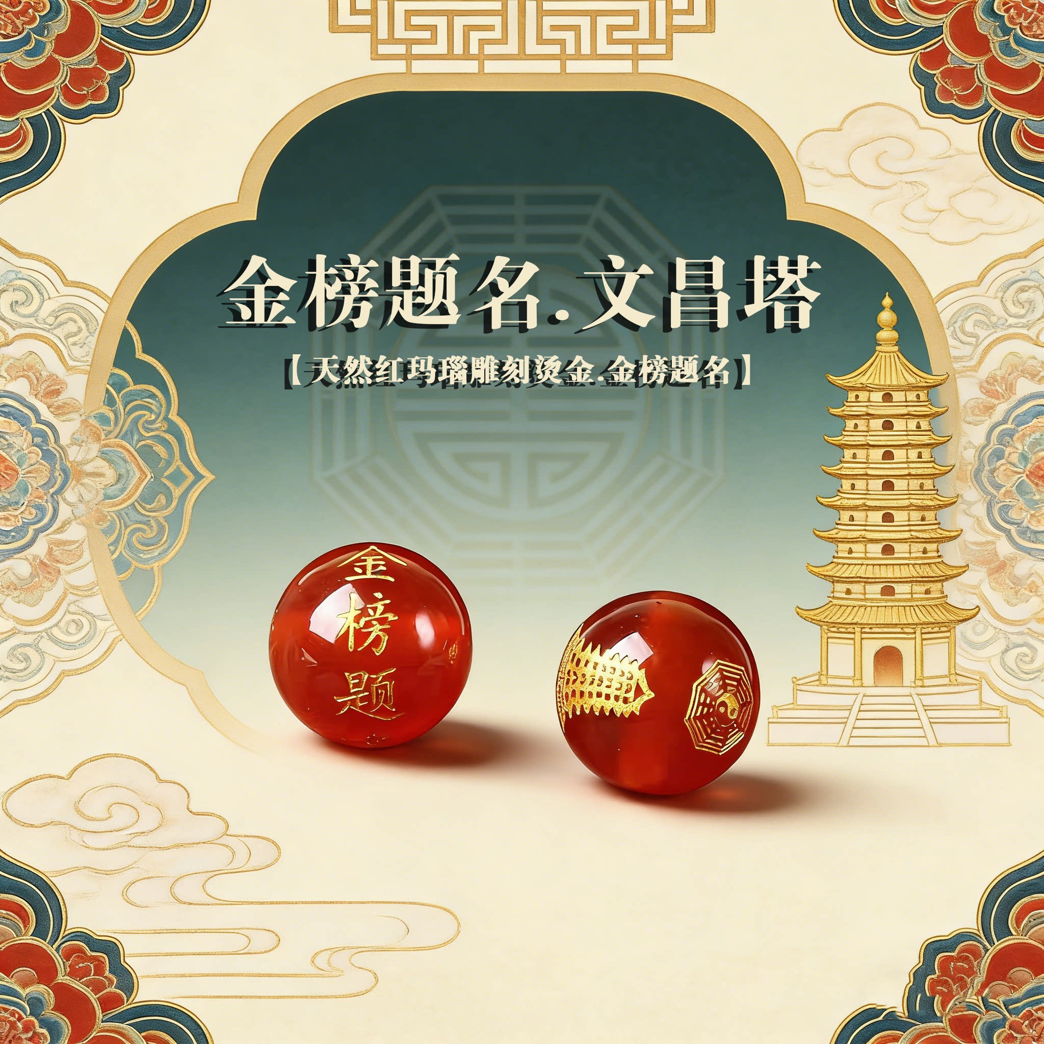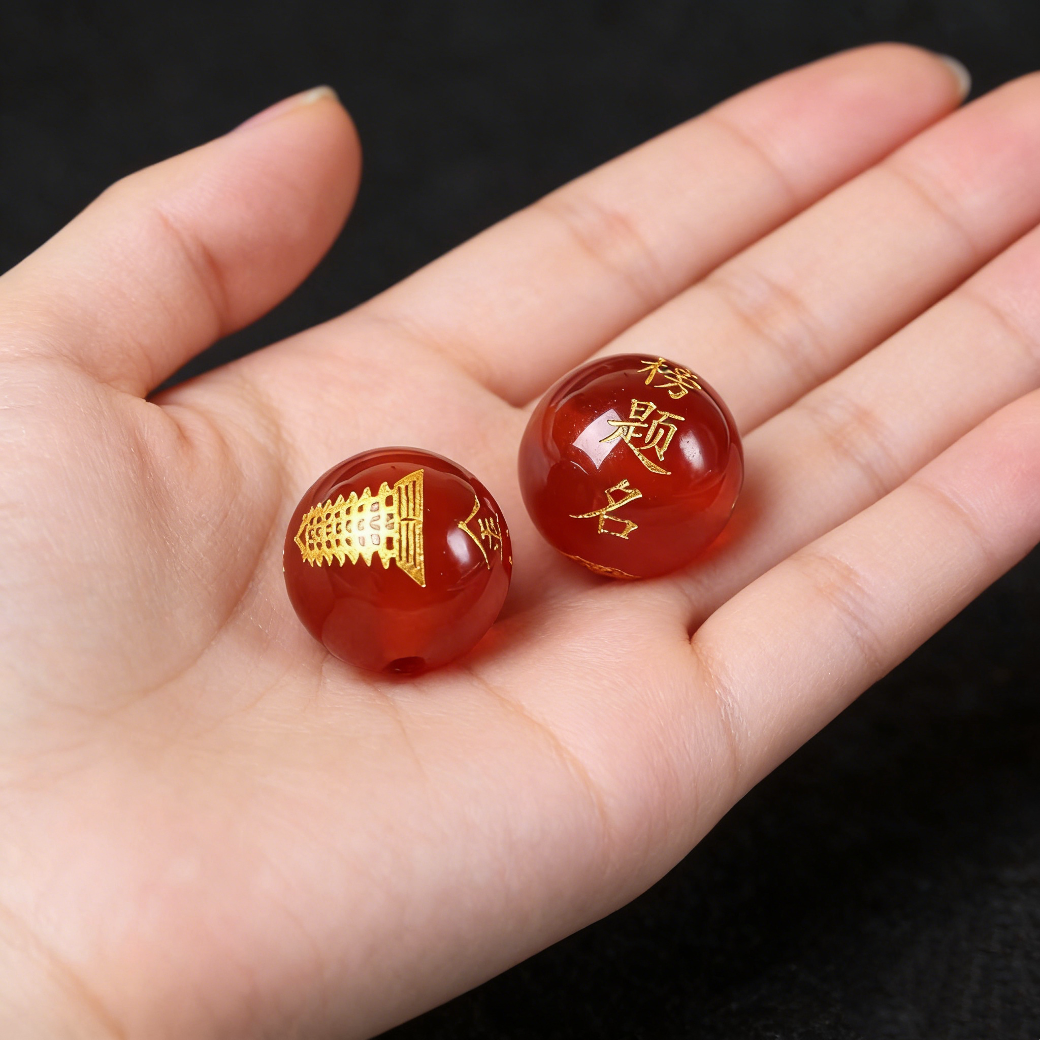 天然黑红玛瑙散珠刻金榜题名文昌塔DIY红绳编织手链材料中考高考