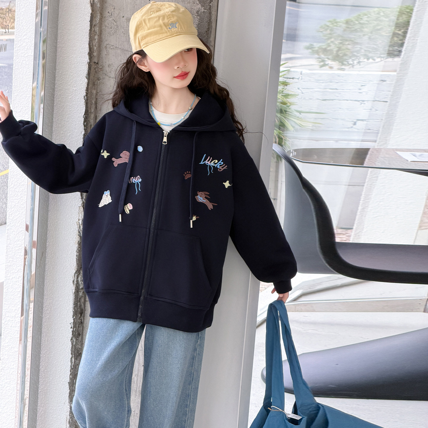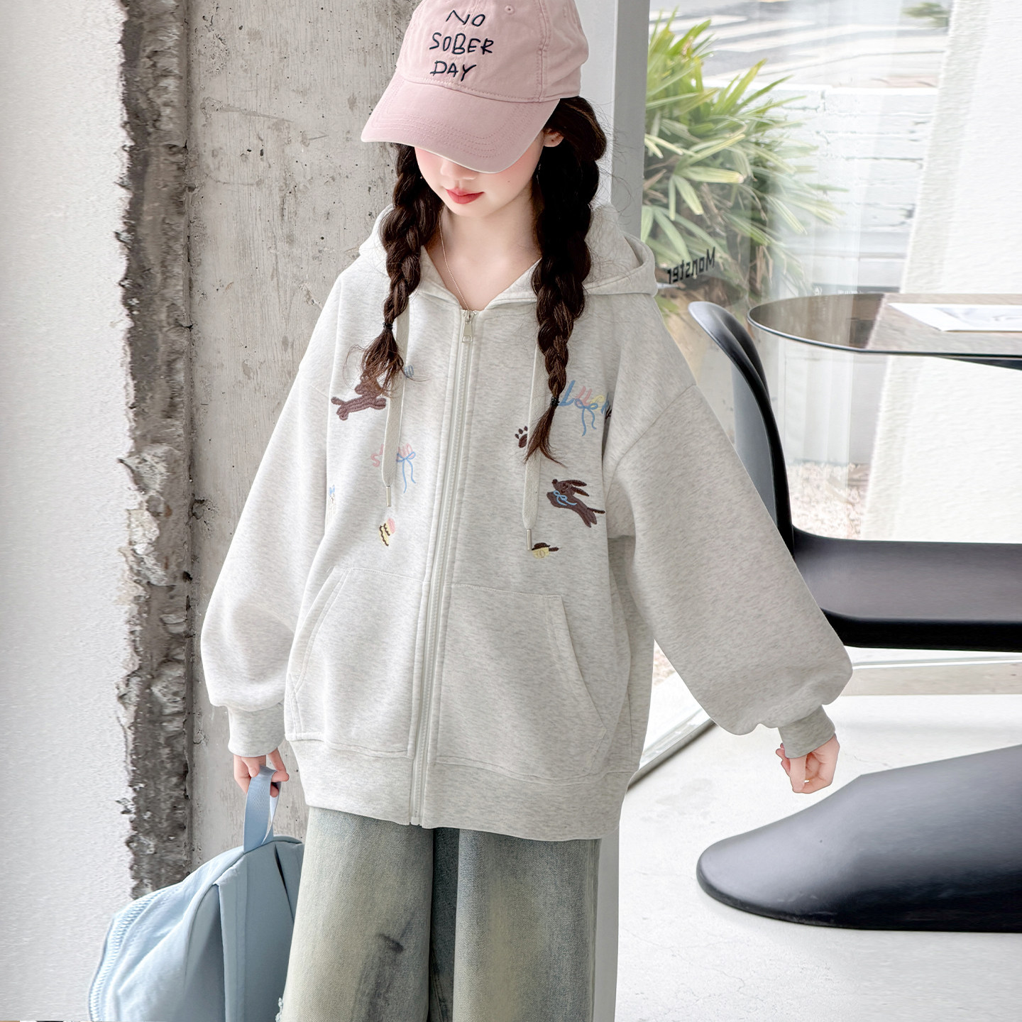 女童外套2026新款儿童春装上衣青少年女孩卫衣连帽洋气春秋中大童