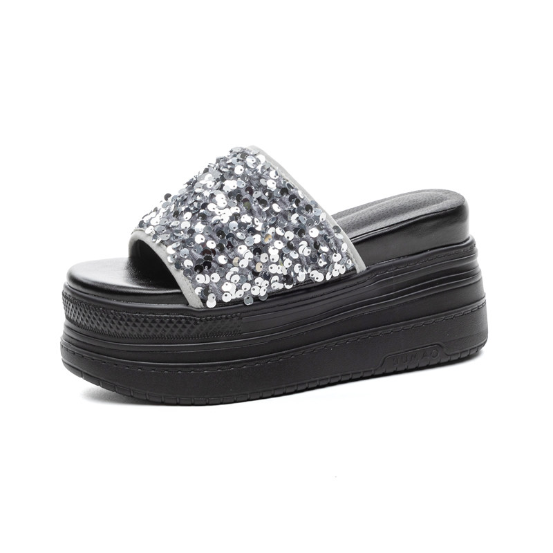 小个子增高10cm厚底凉拖鞋女外穿2026夏新款仙女风亮片松糕一字拖