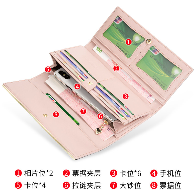 班亚奴钱包女长款2026新款时尚真皮品牌女士钱包折叠式钱夹手拿包