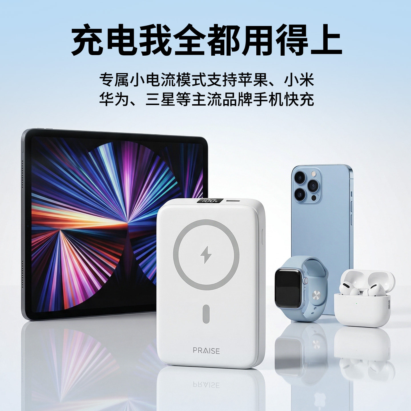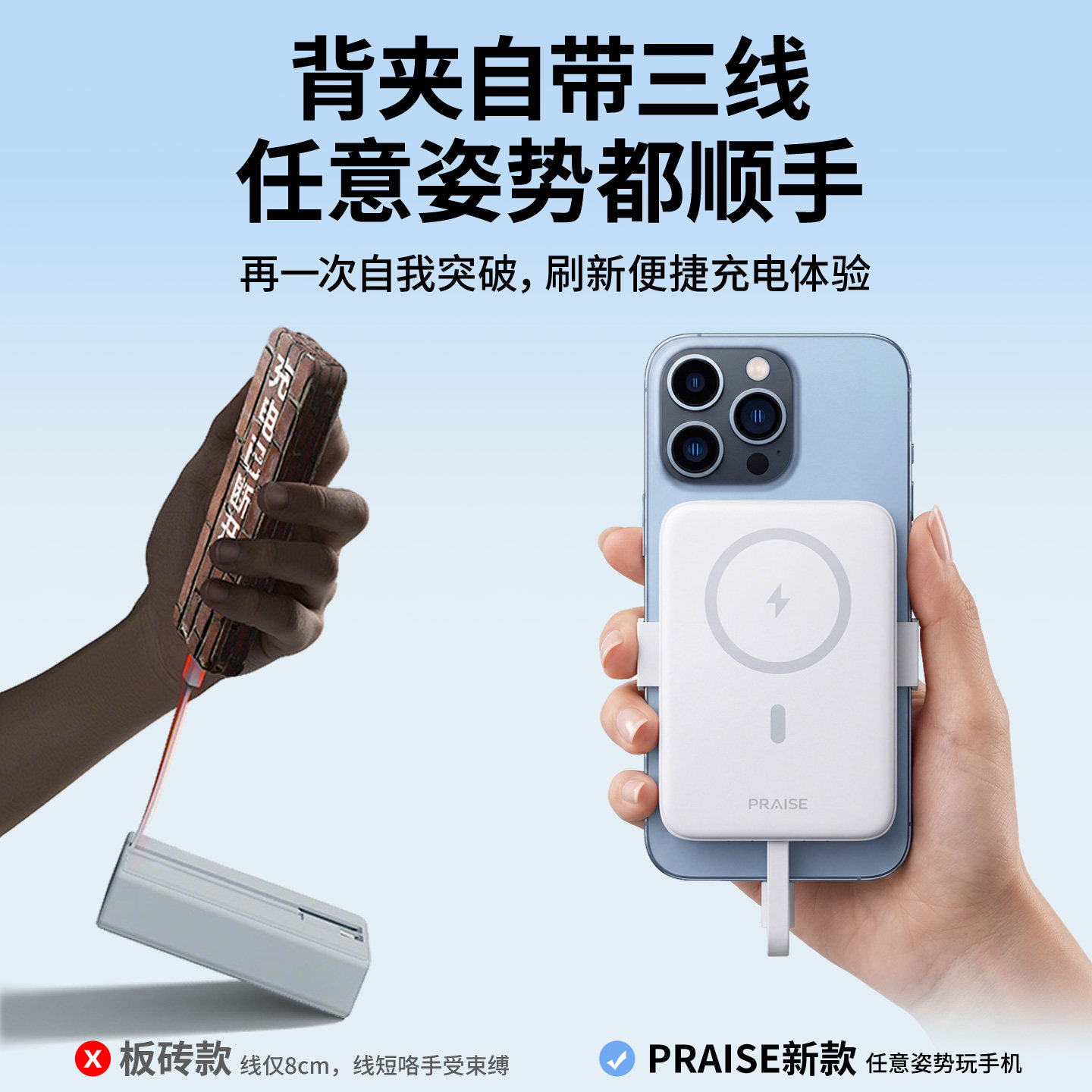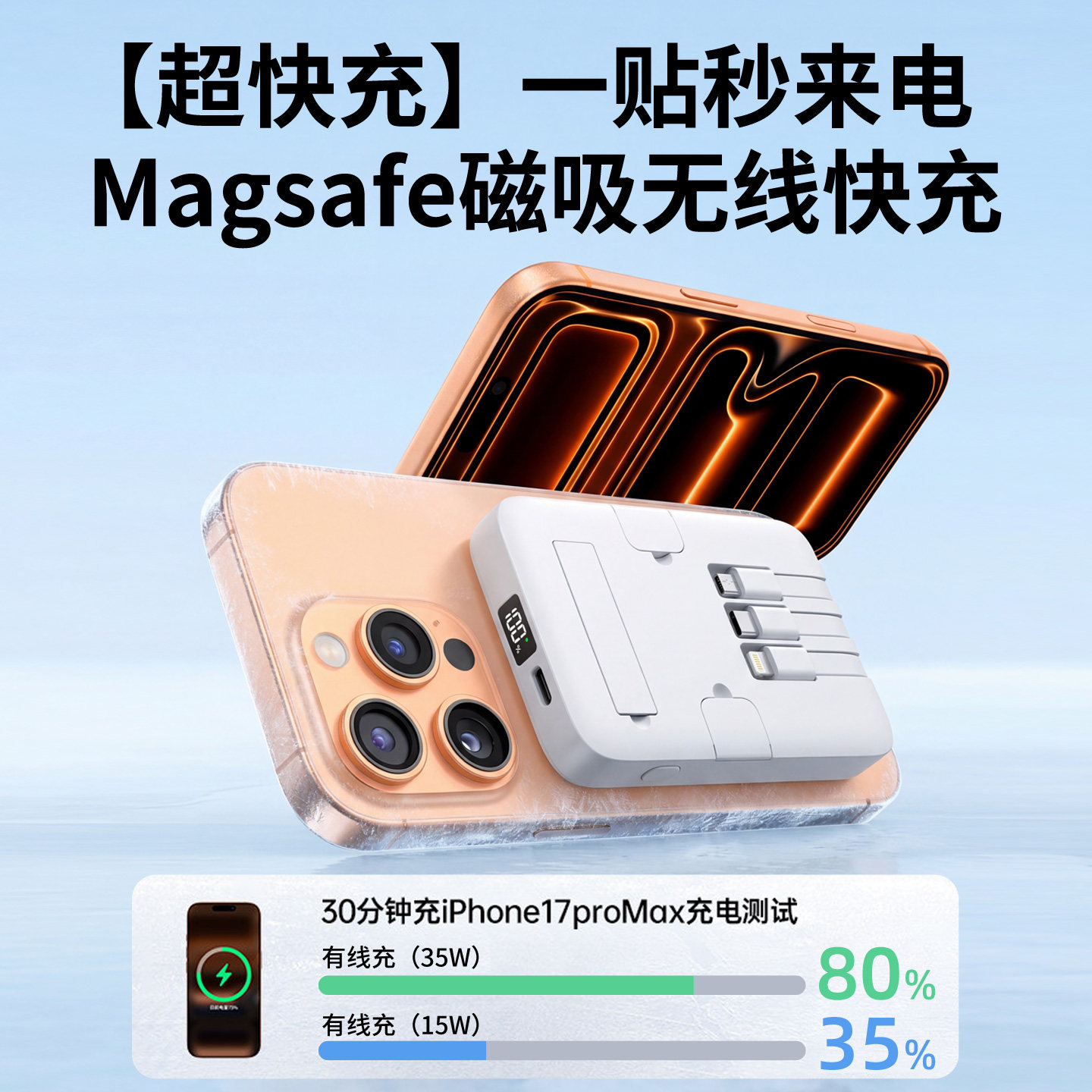 311线报网描述:磁吸背夹支架数显充电宝自带线