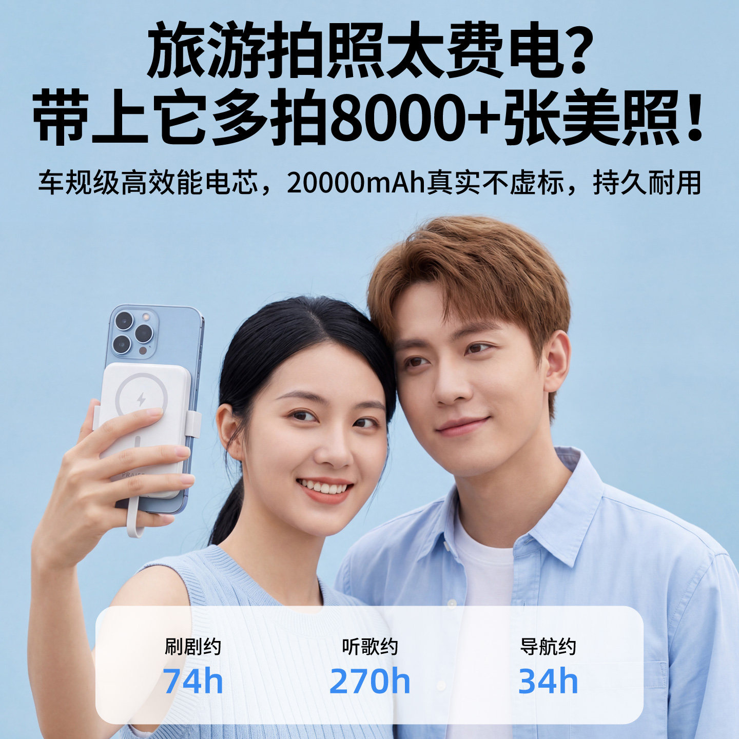 【充电宝3C认证可上飞机】2026新款磁吸无线充电宝快充大容量20000毫安便携自带线移动电源适用苹果华为小米
