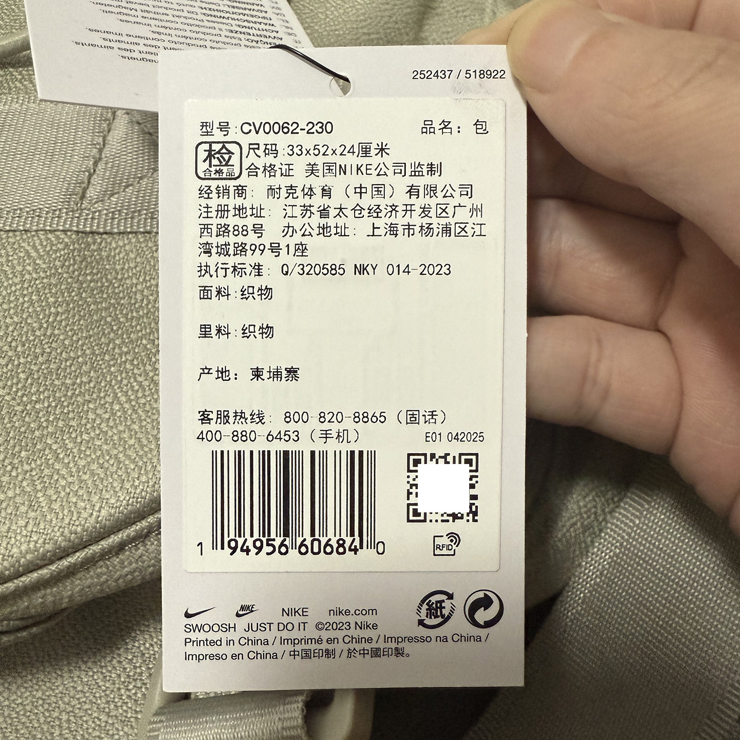 耐克Nike One Club运动健身户外训练旅行手提斜挎休闲包CV0062