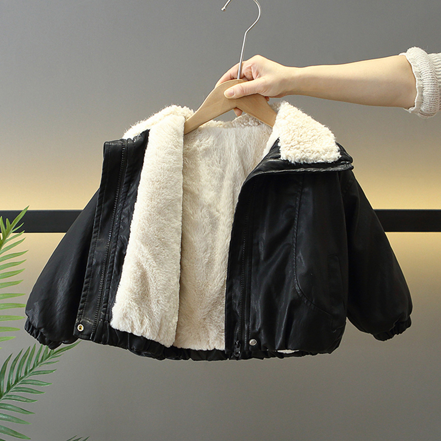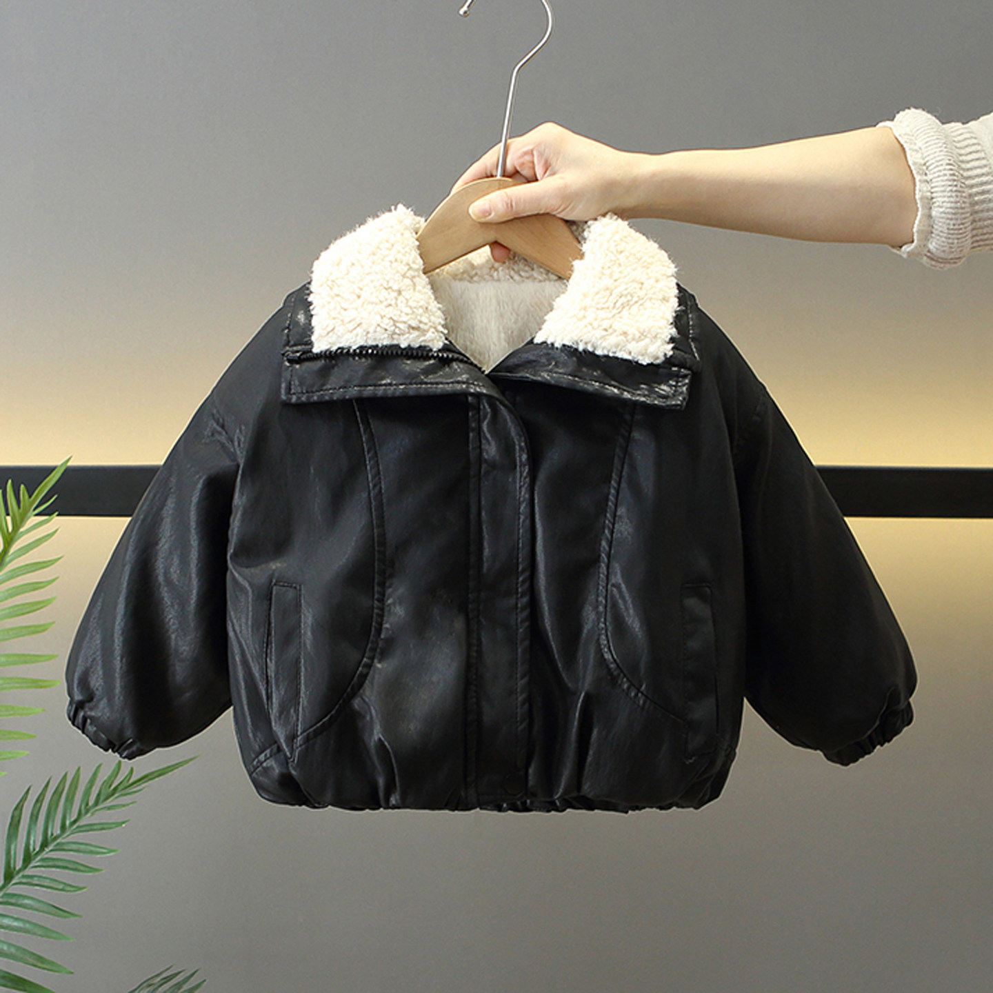 男童皮衣外套2026新款儿童冬季夹克宝宝加厚套装过年机车服上衣潮