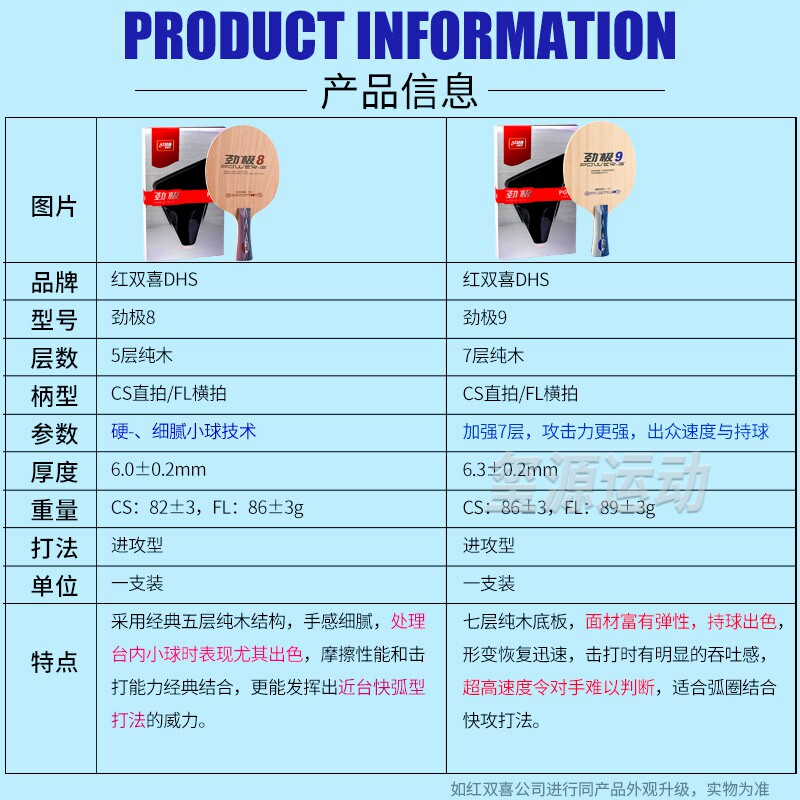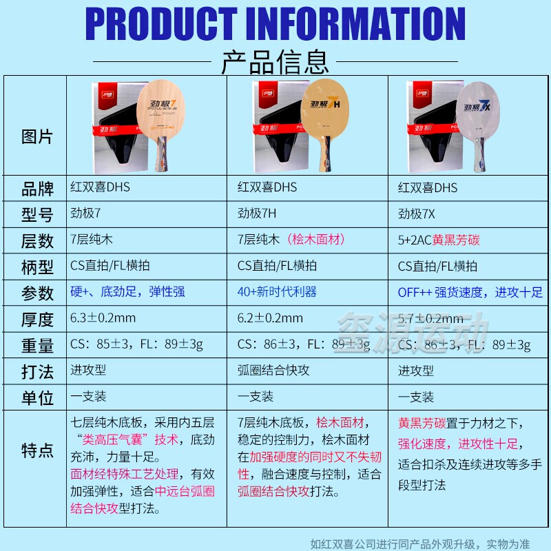 红双喜劲极7七乒乓球拍底板劲极9/8纯木7X芳碳桧木碳纤维乒乓球板