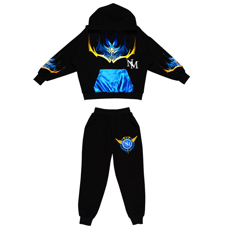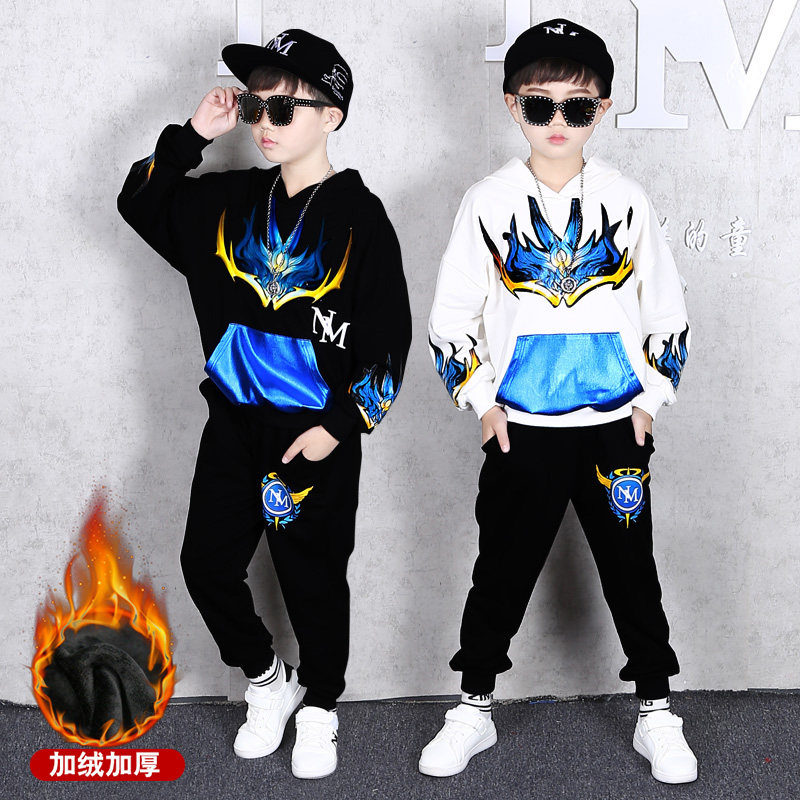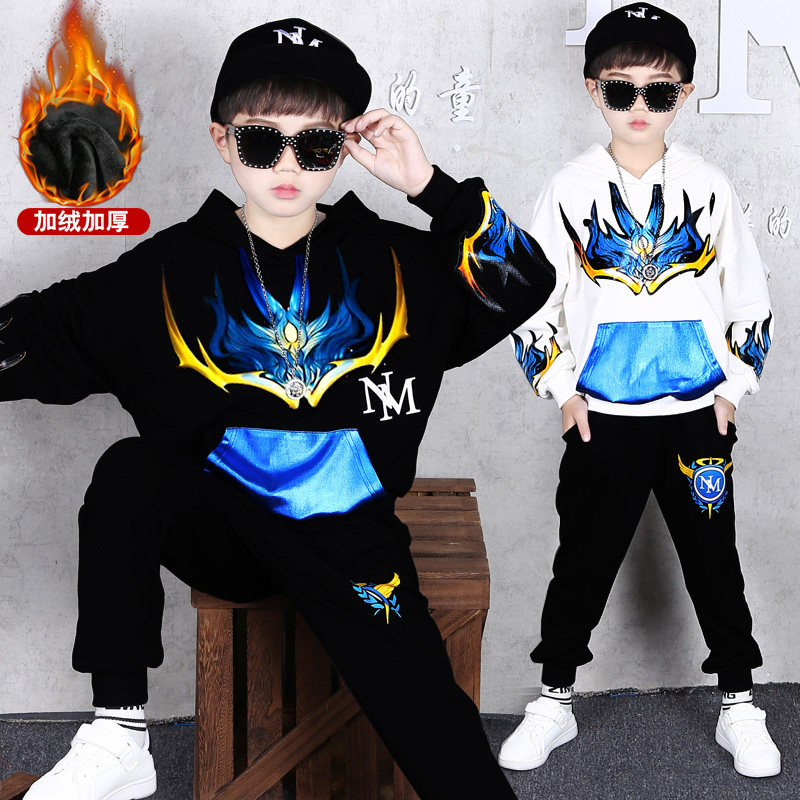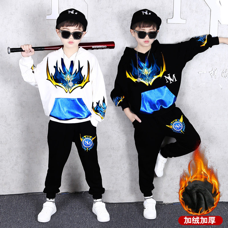 嘻哈潮酷8中大童冬季加绒套装9岁男童春秋卫衣6-7男孩帅气连帽衫5