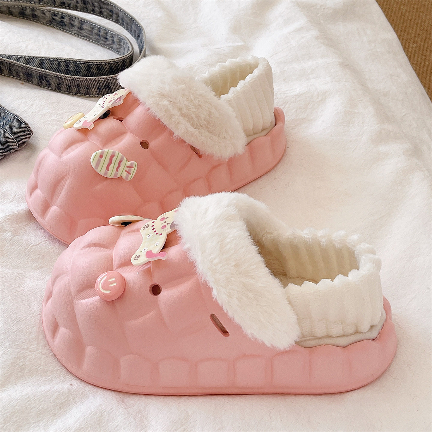 包跟棉鞋女款冬季居家外穿可爱猫鱼加绒保暖防滑可拆卸防水棉拖鞋
