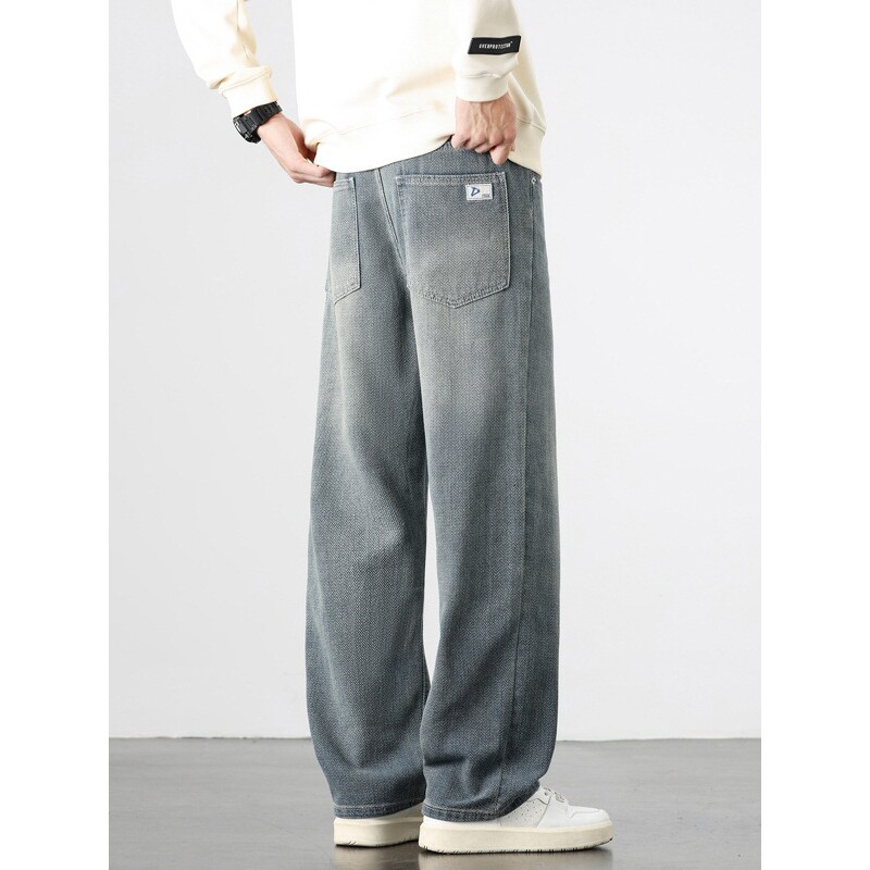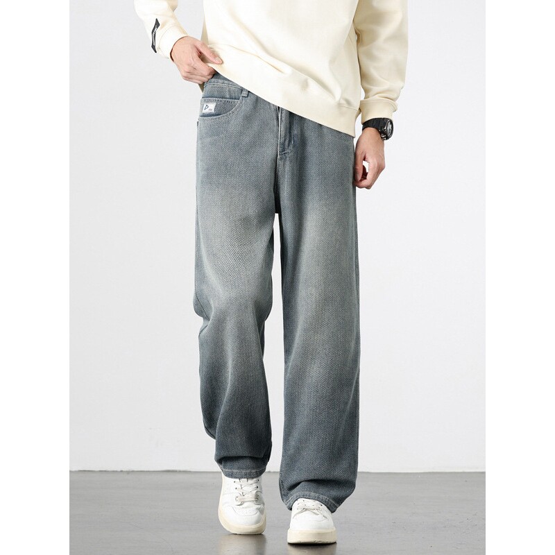 德国美式复古直筒加绒牛仔裤男士季休闲宽松裤子青少年阔腿裤男款