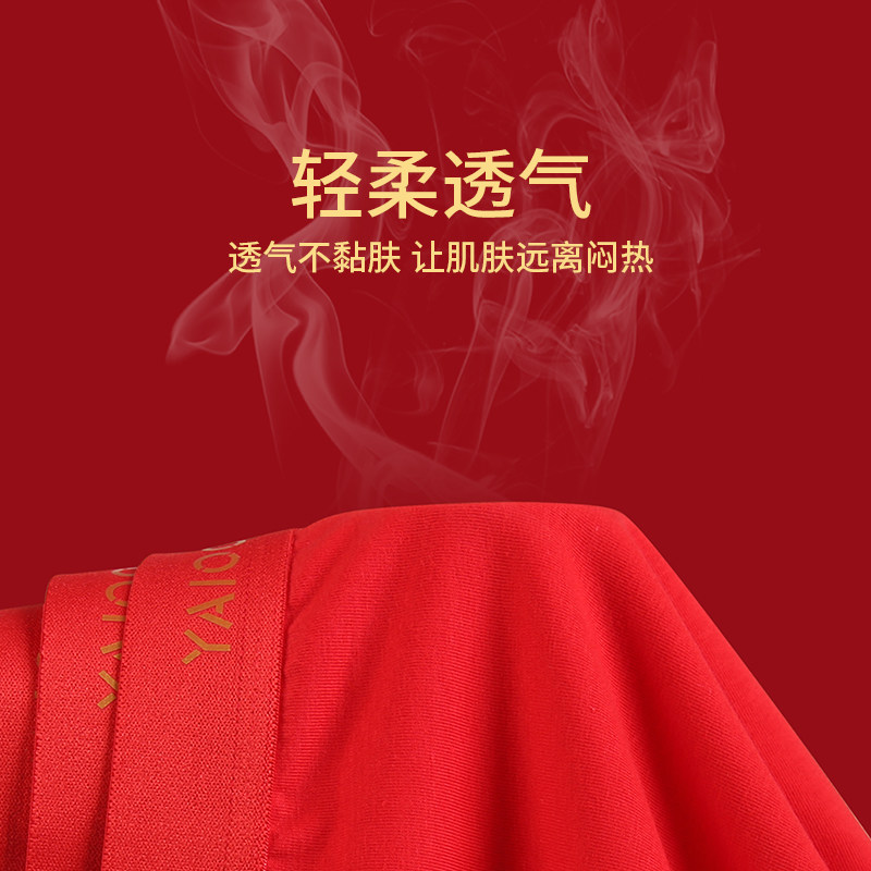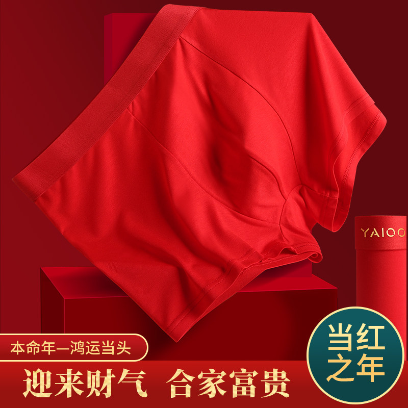雅鹿本命年男士内裤男款红色四角平角短裤纯棉结婚礼物2026属马年