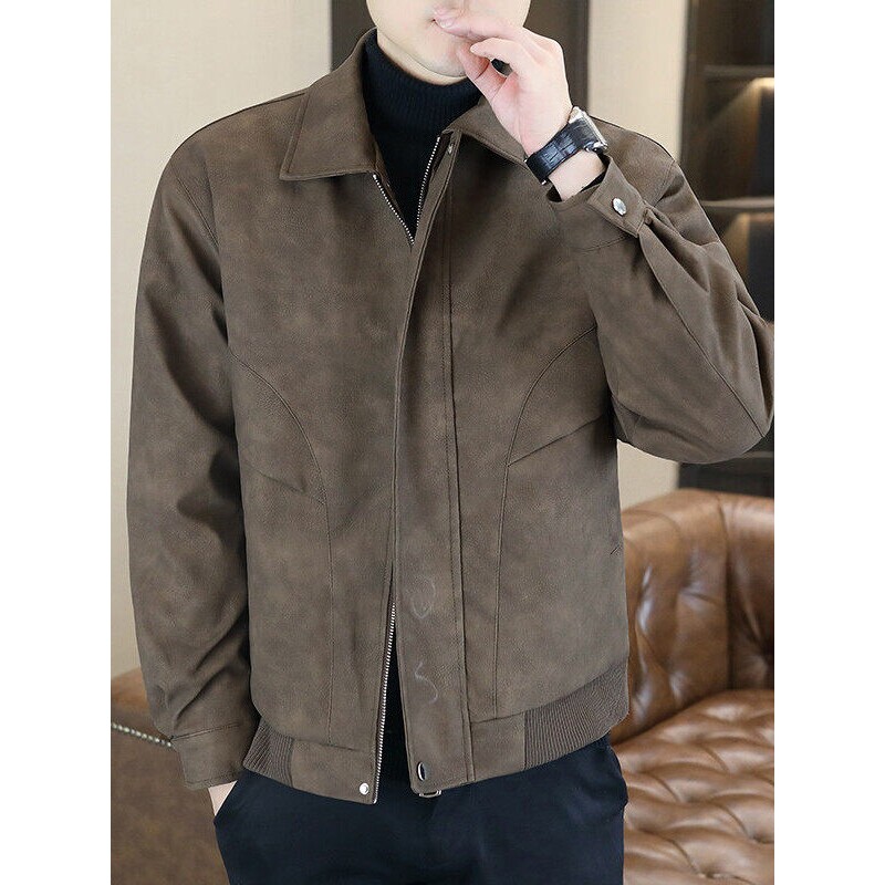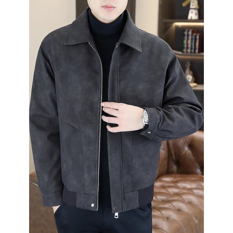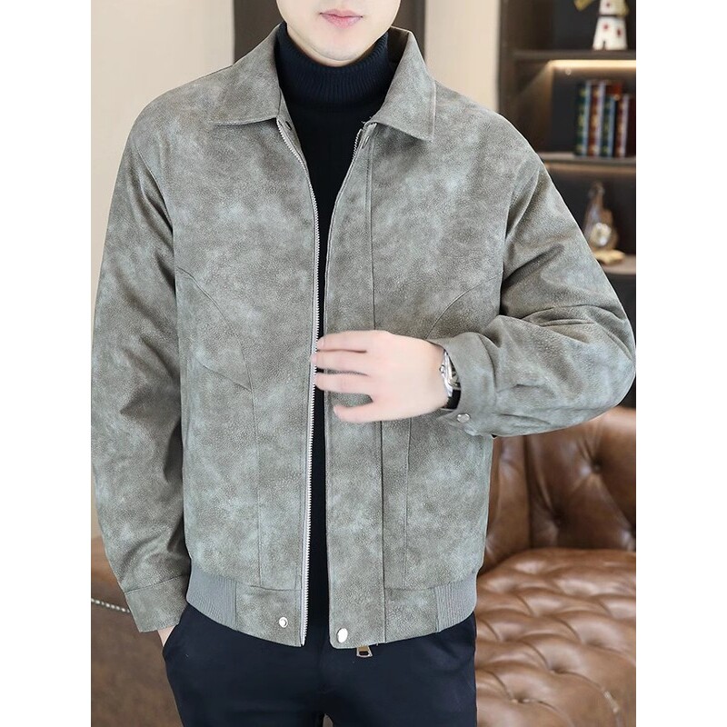 男士痞帅高级感翻领机车皮衣外套男款春秋季潮流宽松休闲PU皮夹克